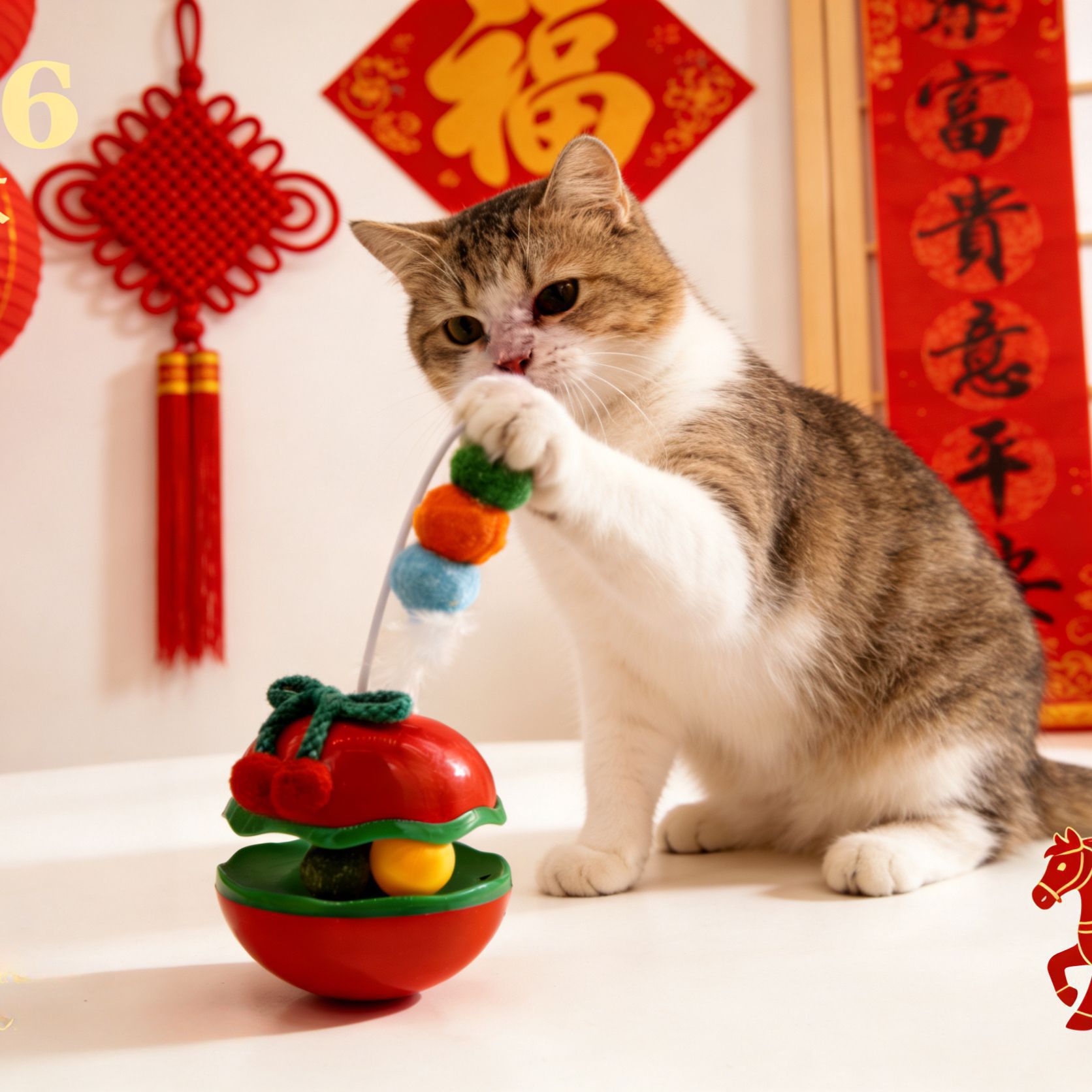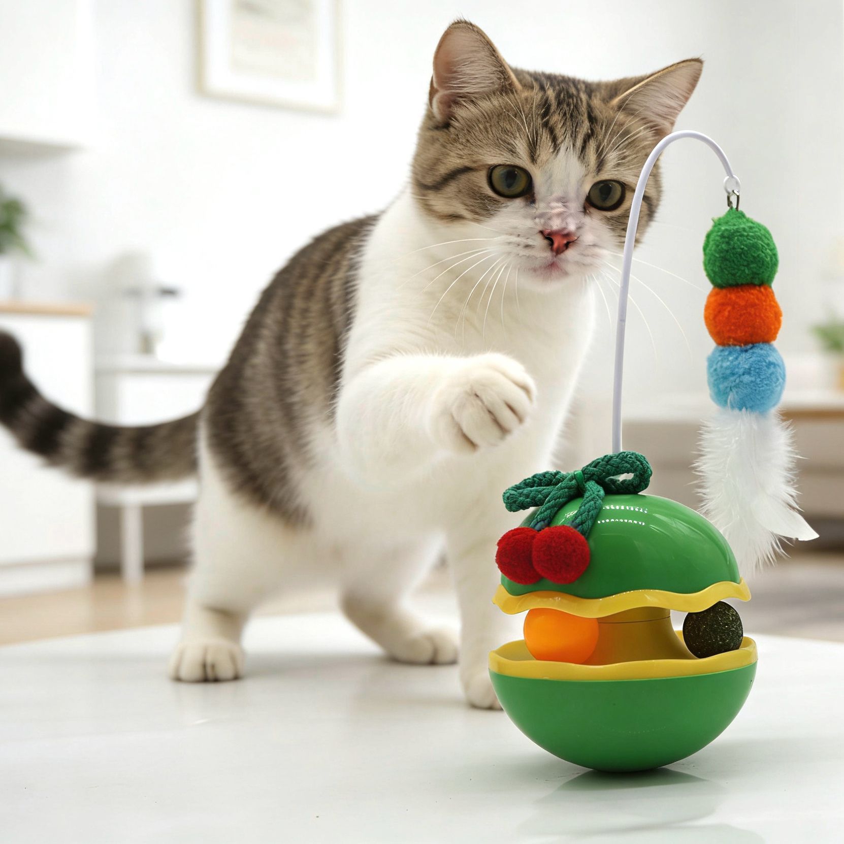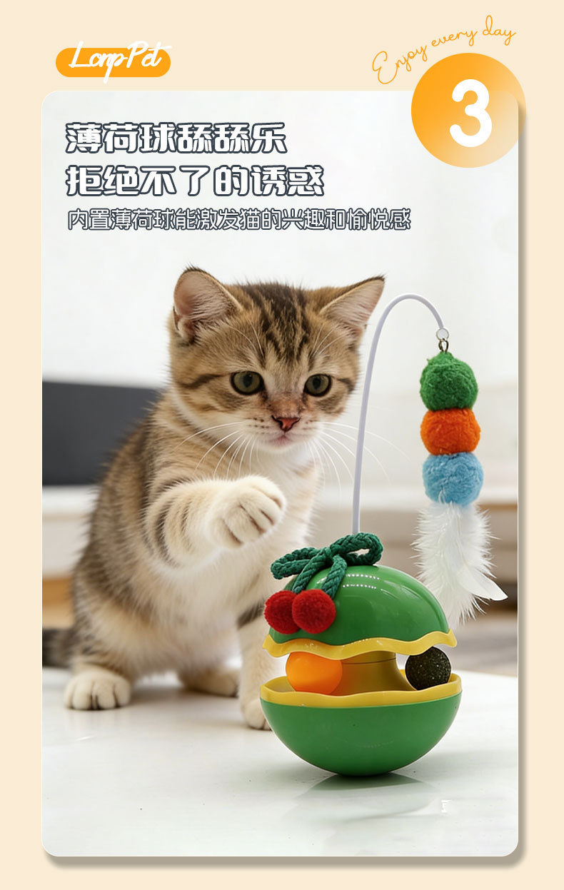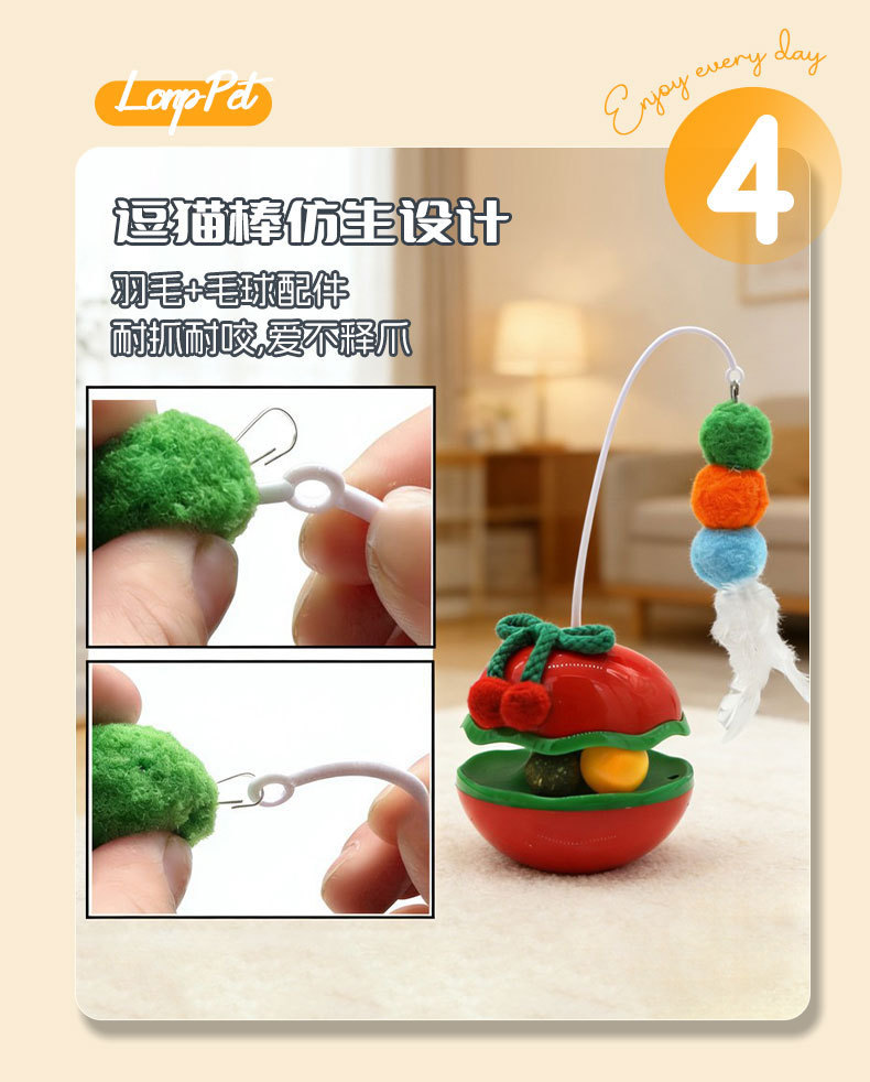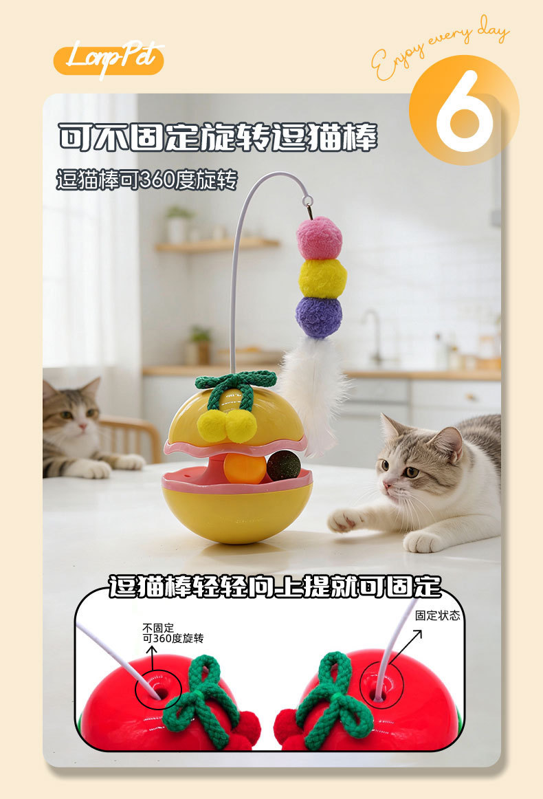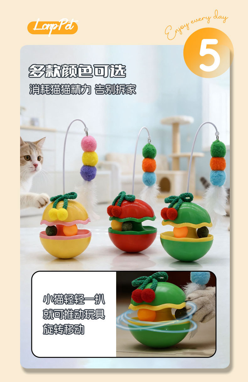 苹果不倒翁猫咪解闷玩具自嗨逗猫棒羽毛铃铛猫薄荷球转盘宠物玩具