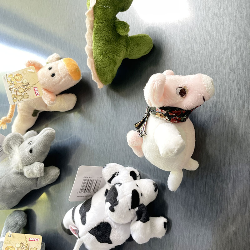 跨境现货卡通动物公仔磁力冰箱贴老虎可吸附外贸小猪毛绒玩具玩偶
