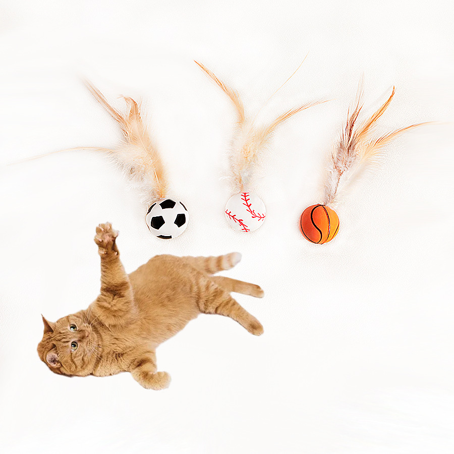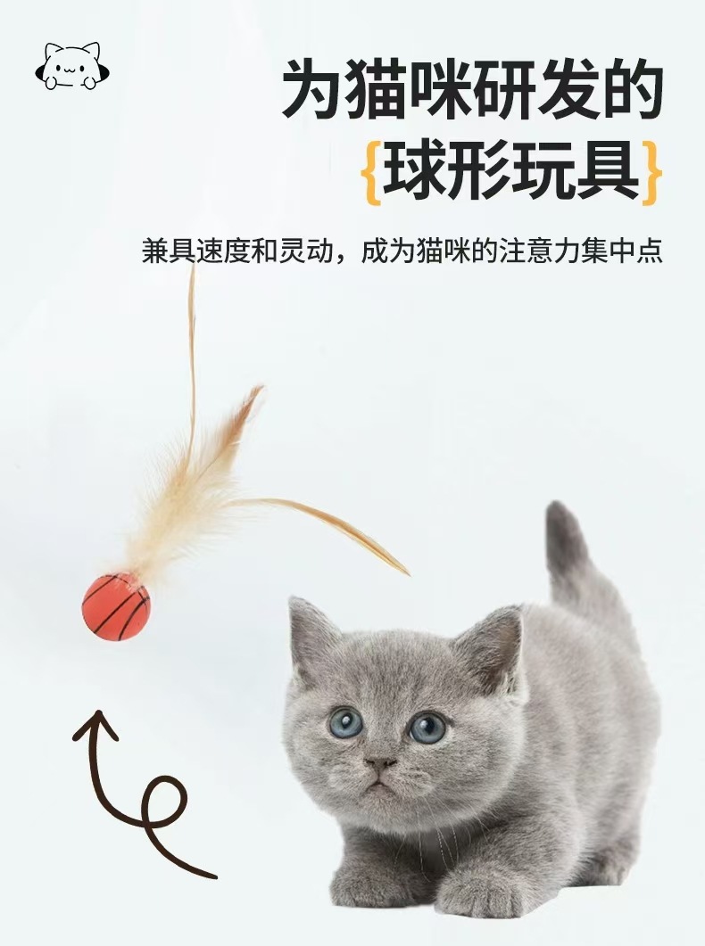 猫咪自嗨玩具球弹力鸡毛球互动解闷抛掷猫玩具逗猫神器宠物玩具