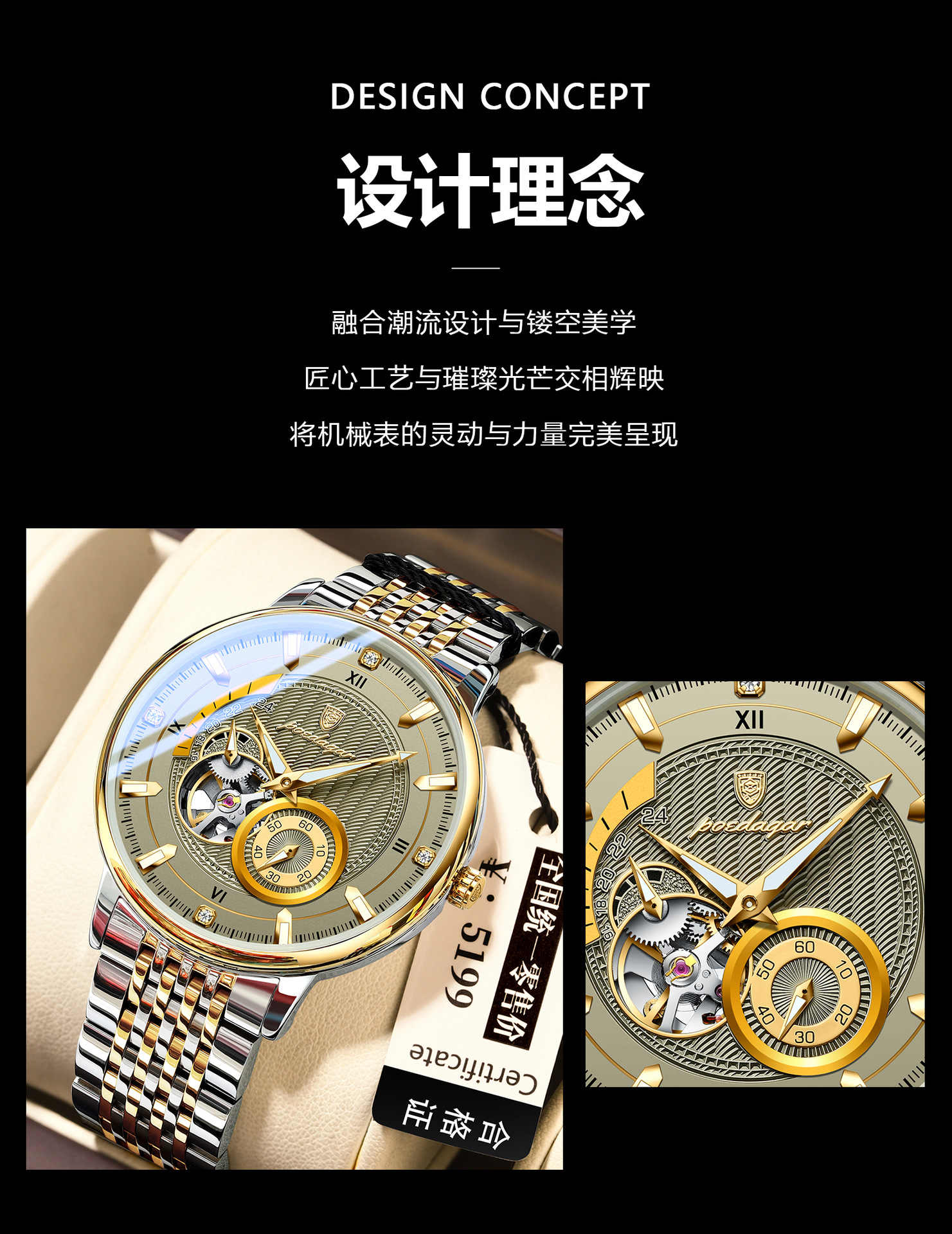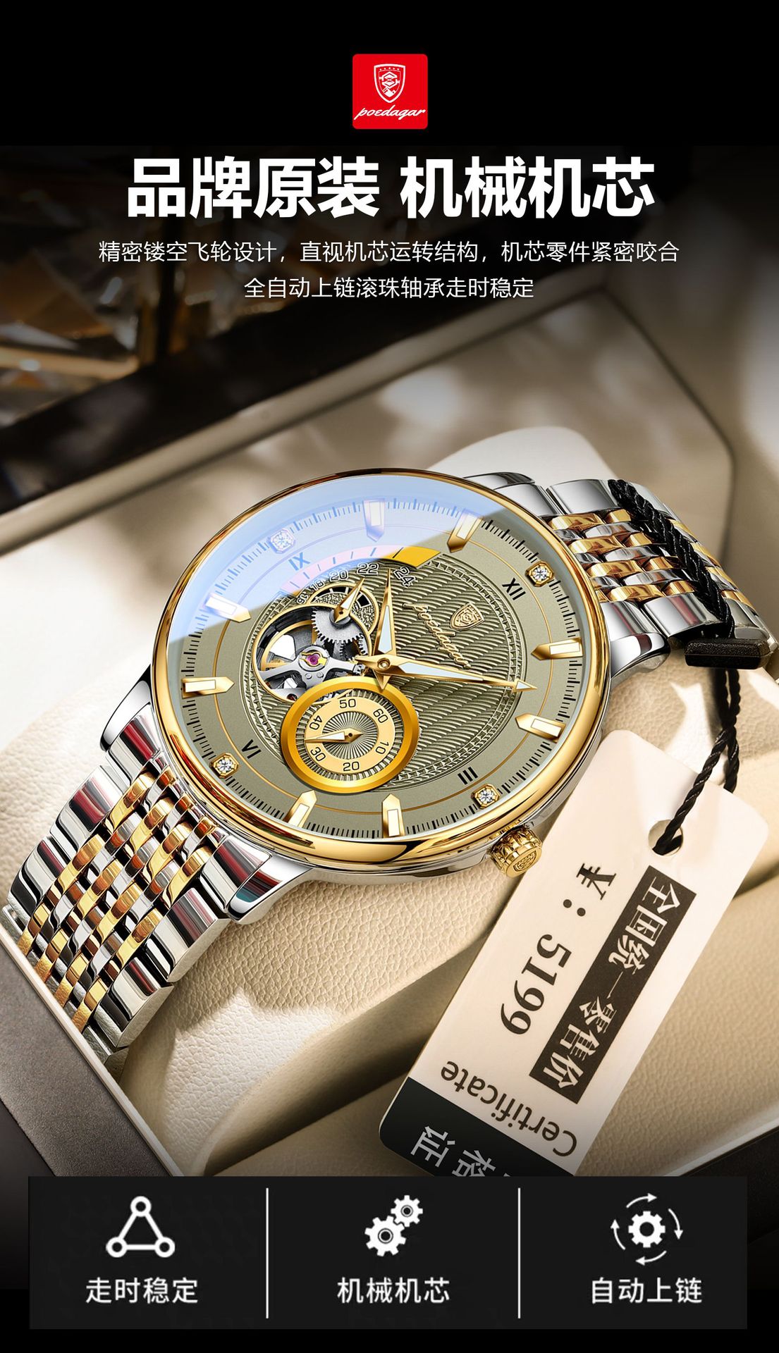 瑞士品牌正品全自动男士手表防水夜光机械表直播外贸爆款一件代发