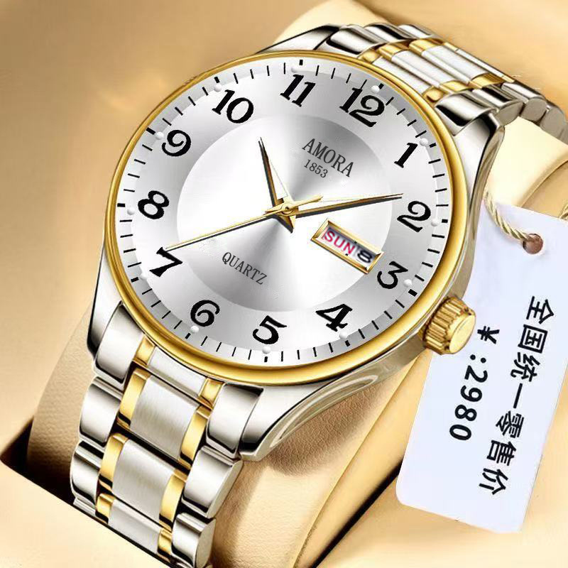 正品2025新款手表男士全自动非机械表防水精钢带双日历男表夜光