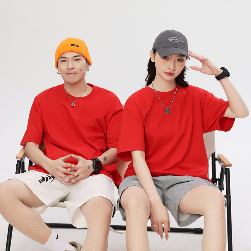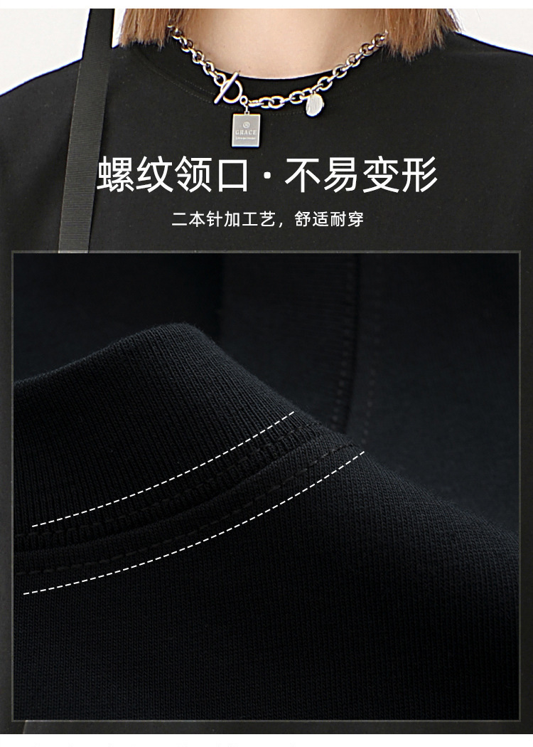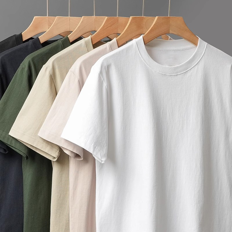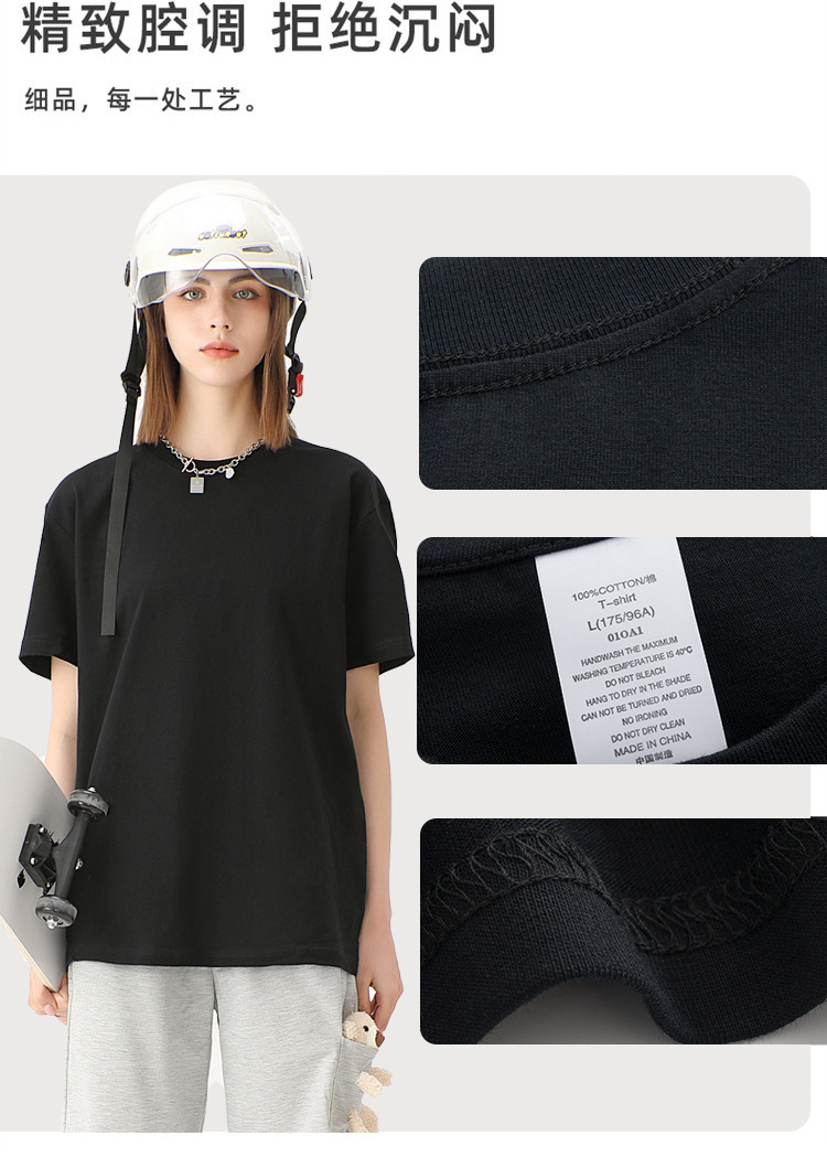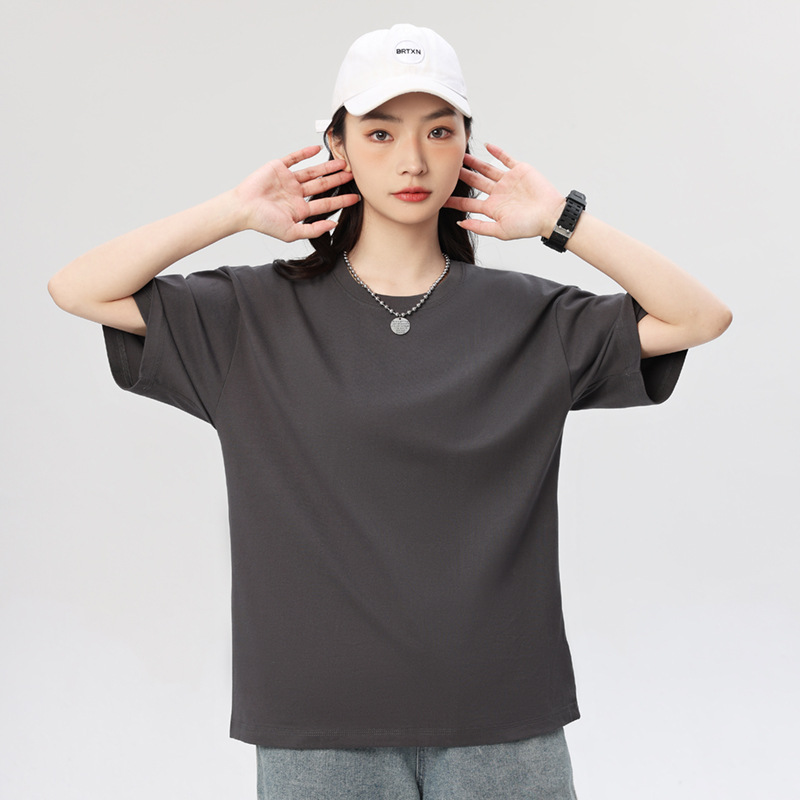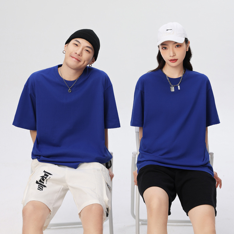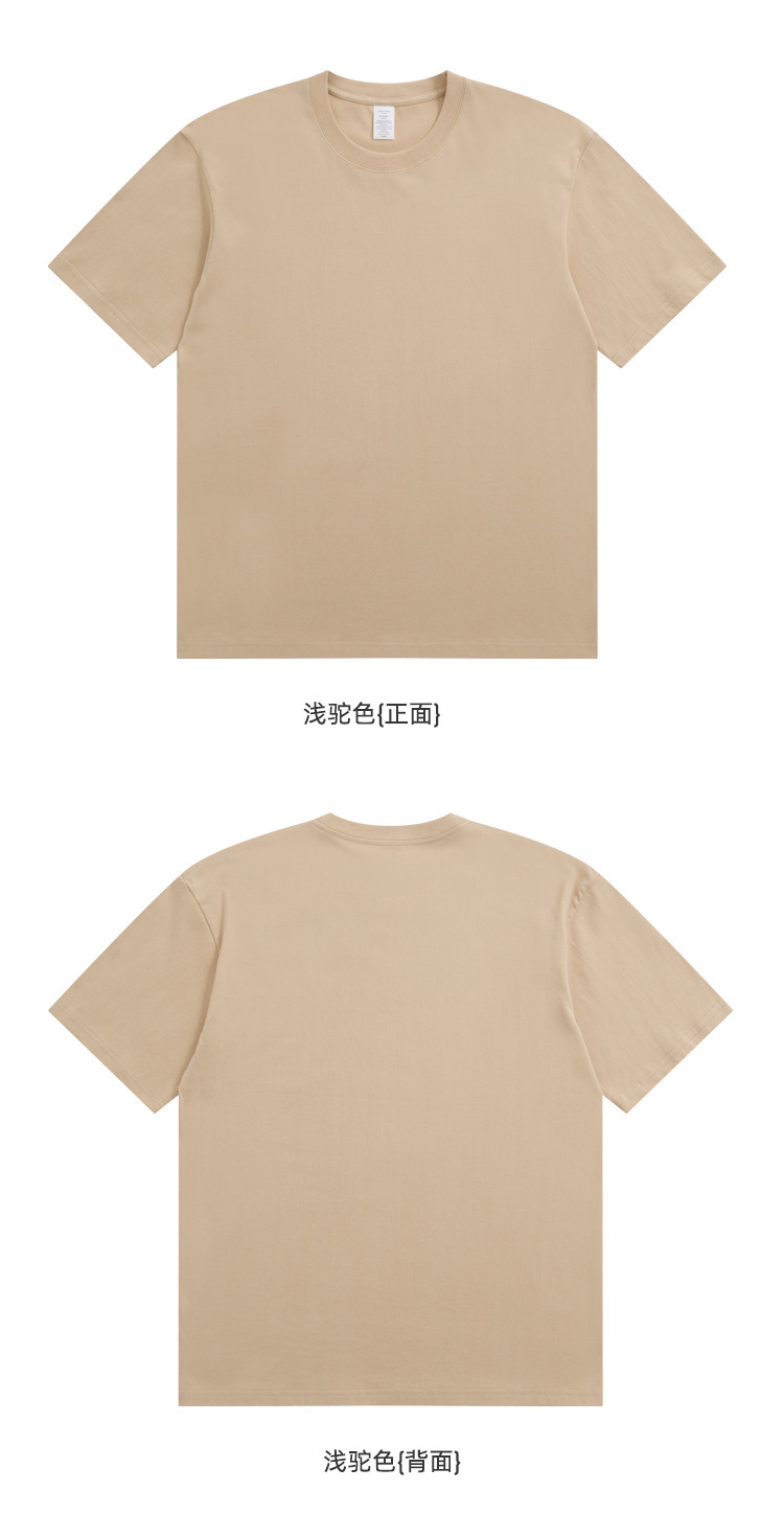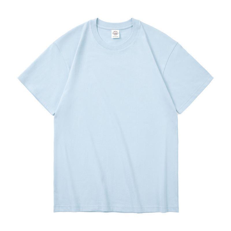 奶蓝色230g重磅纯棉短袖T恤夏季小领口宽松厚实不透男女百搭半袖T