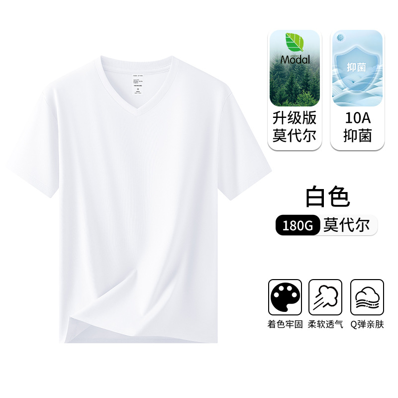 高档天丝莫代尔 短袖t恤男士内搭透气2026新款夏季白色打底衫上衣