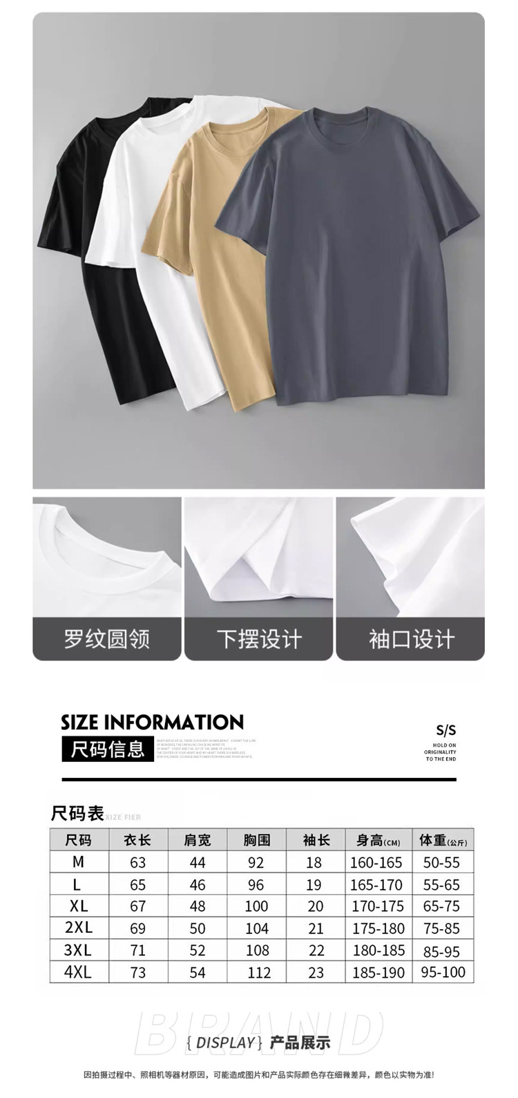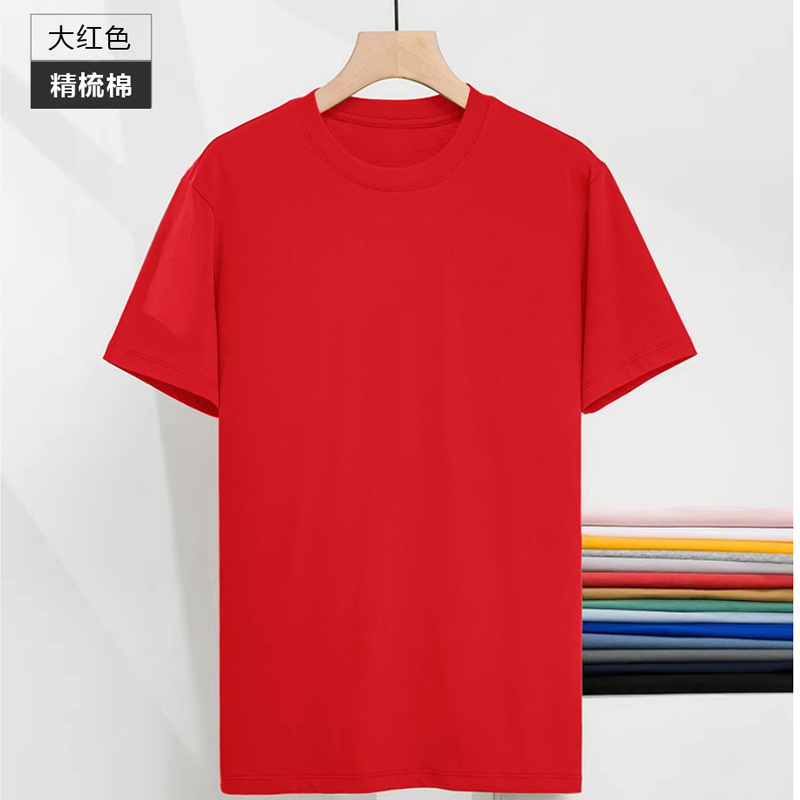 180G精梳棉短袖 男女T恤圆领短袖纯色t恤衫直筒休闲圆领正肩 T恤