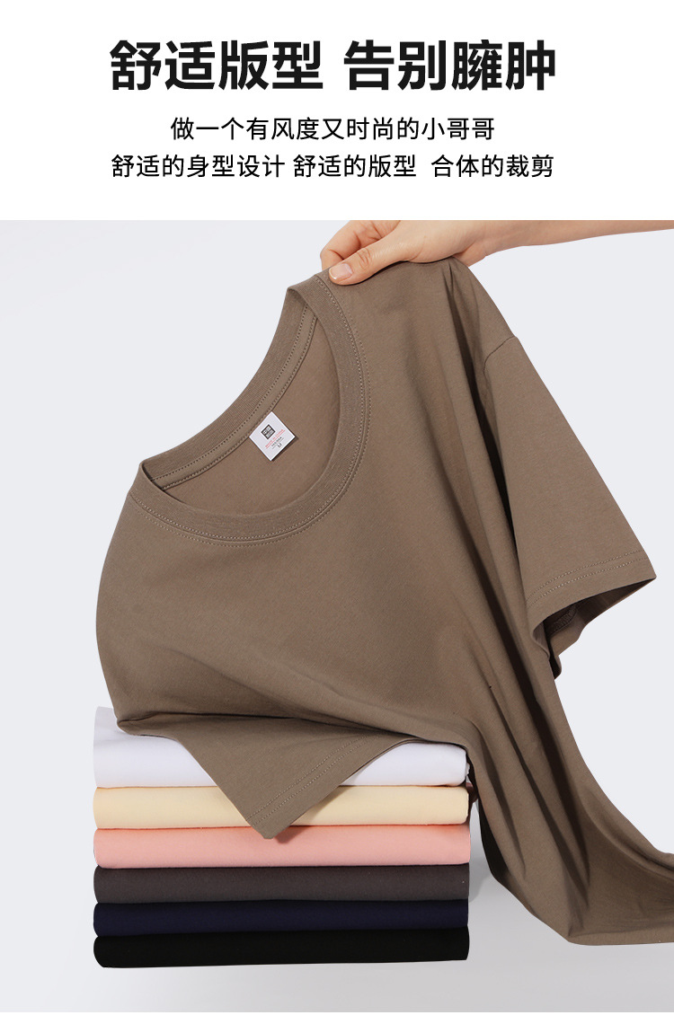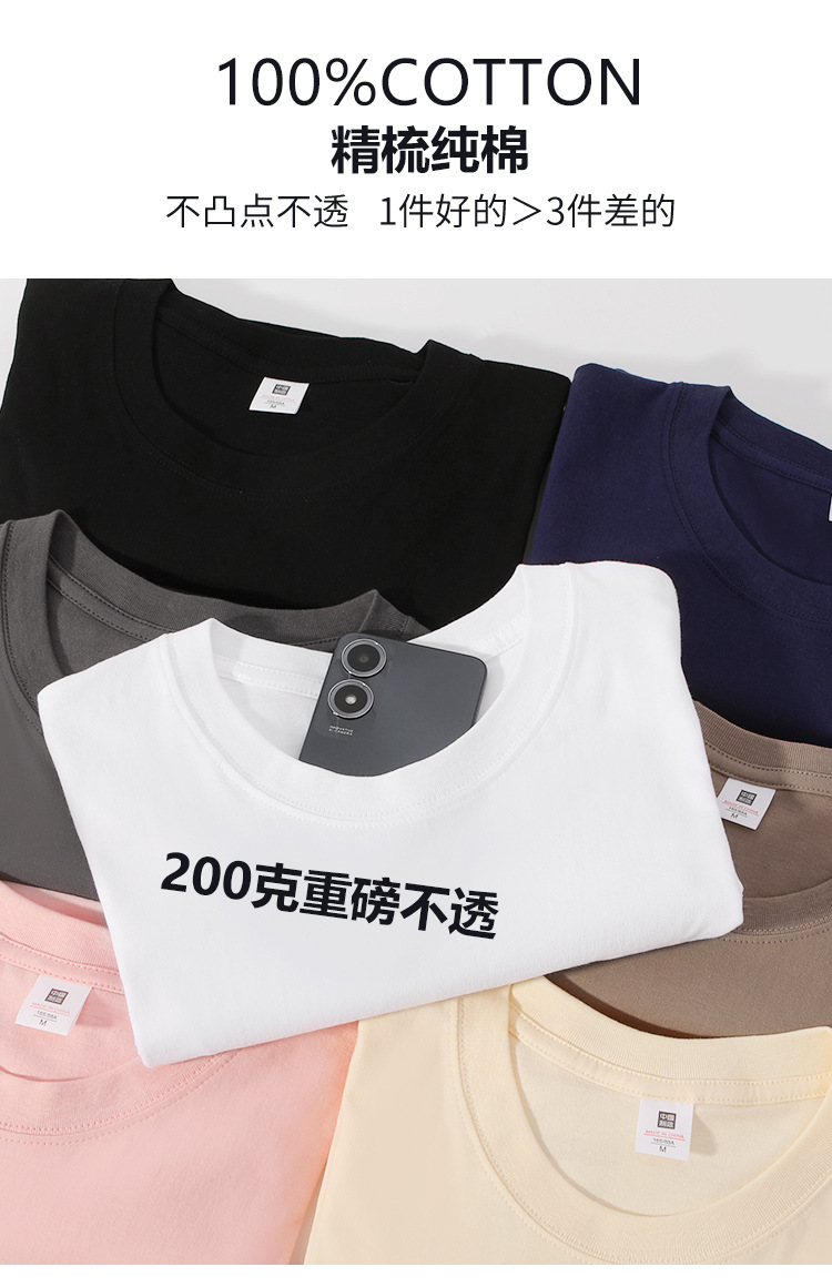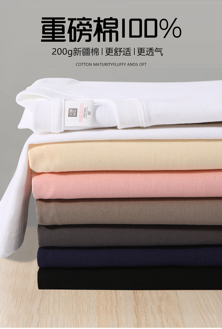 批发200克长绒棉重磅男短袖t恤纯色夏季棉圆领打底衫厂家宽松半袖