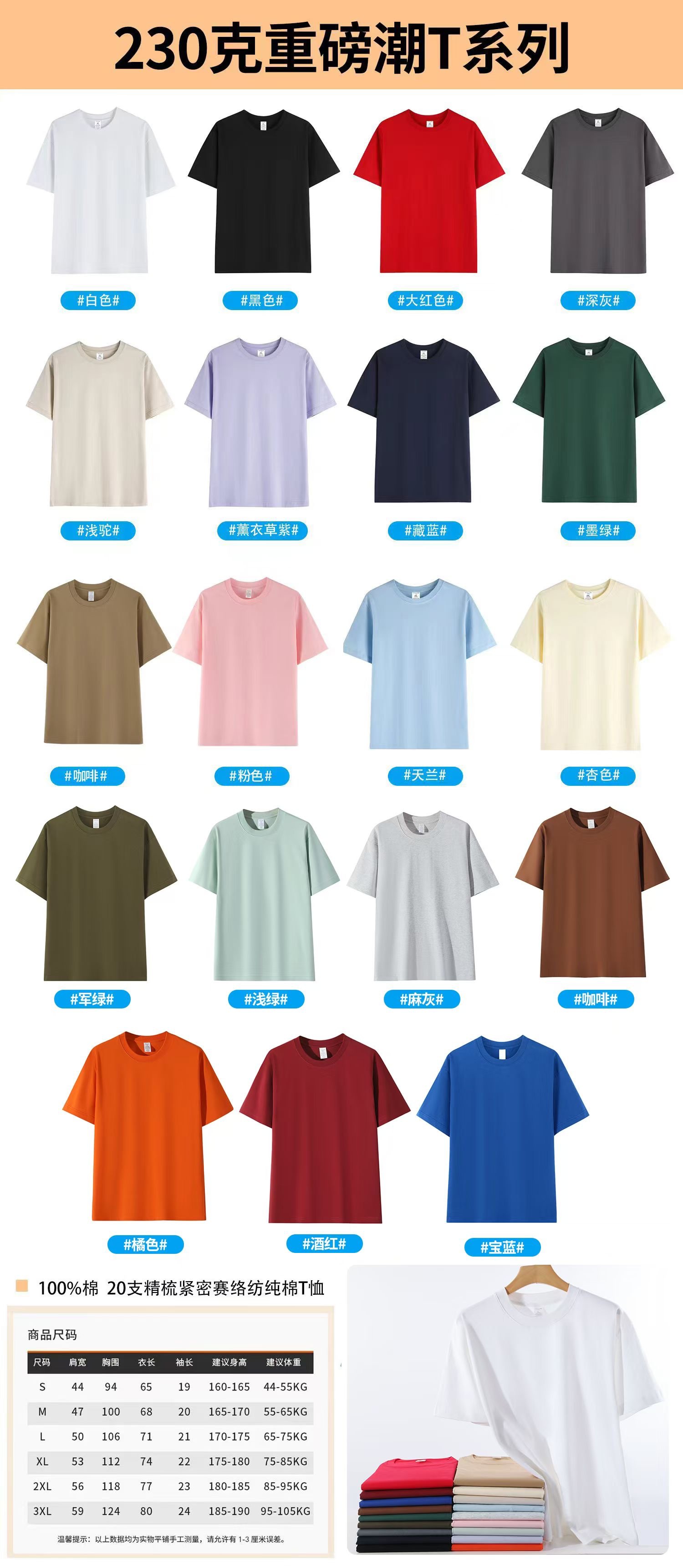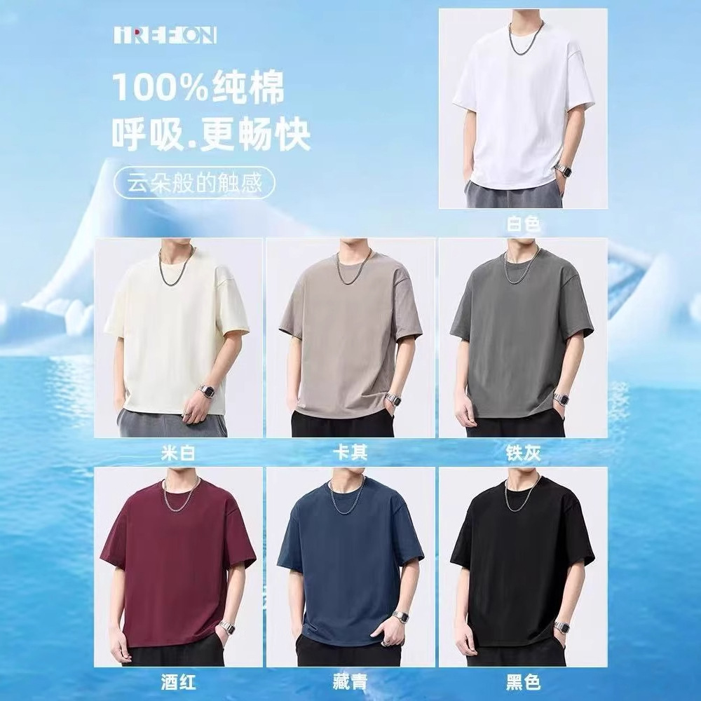 230g重磅T恤厂家夏纯棉休闲落肩宽松短袖纯色可印logo打底衫半袖