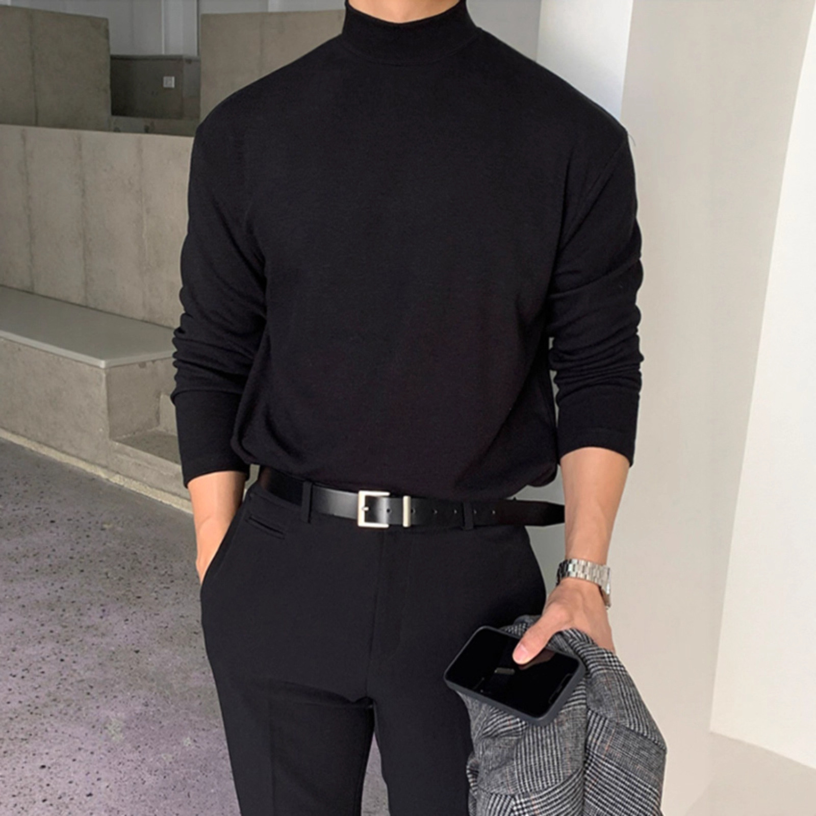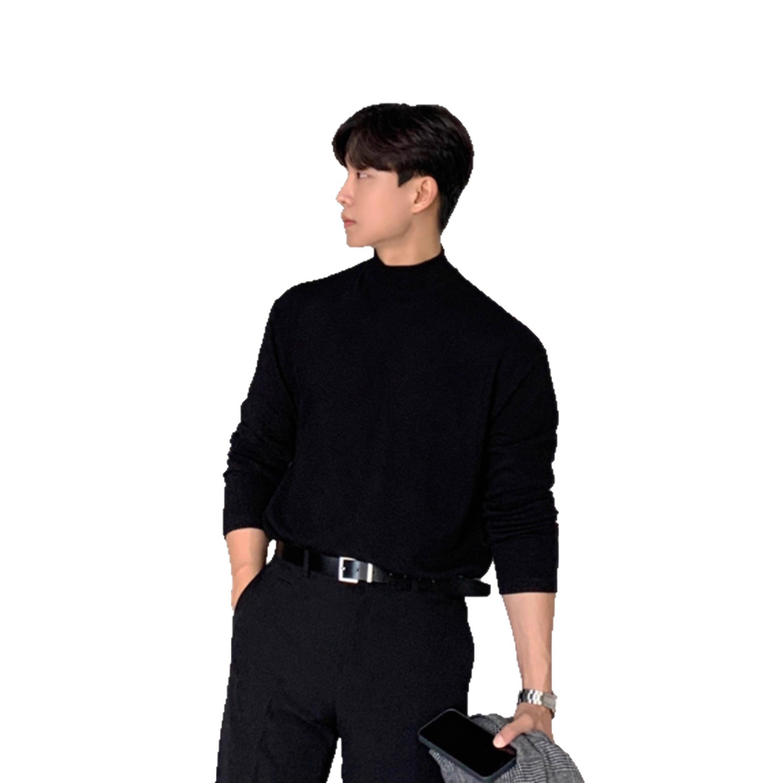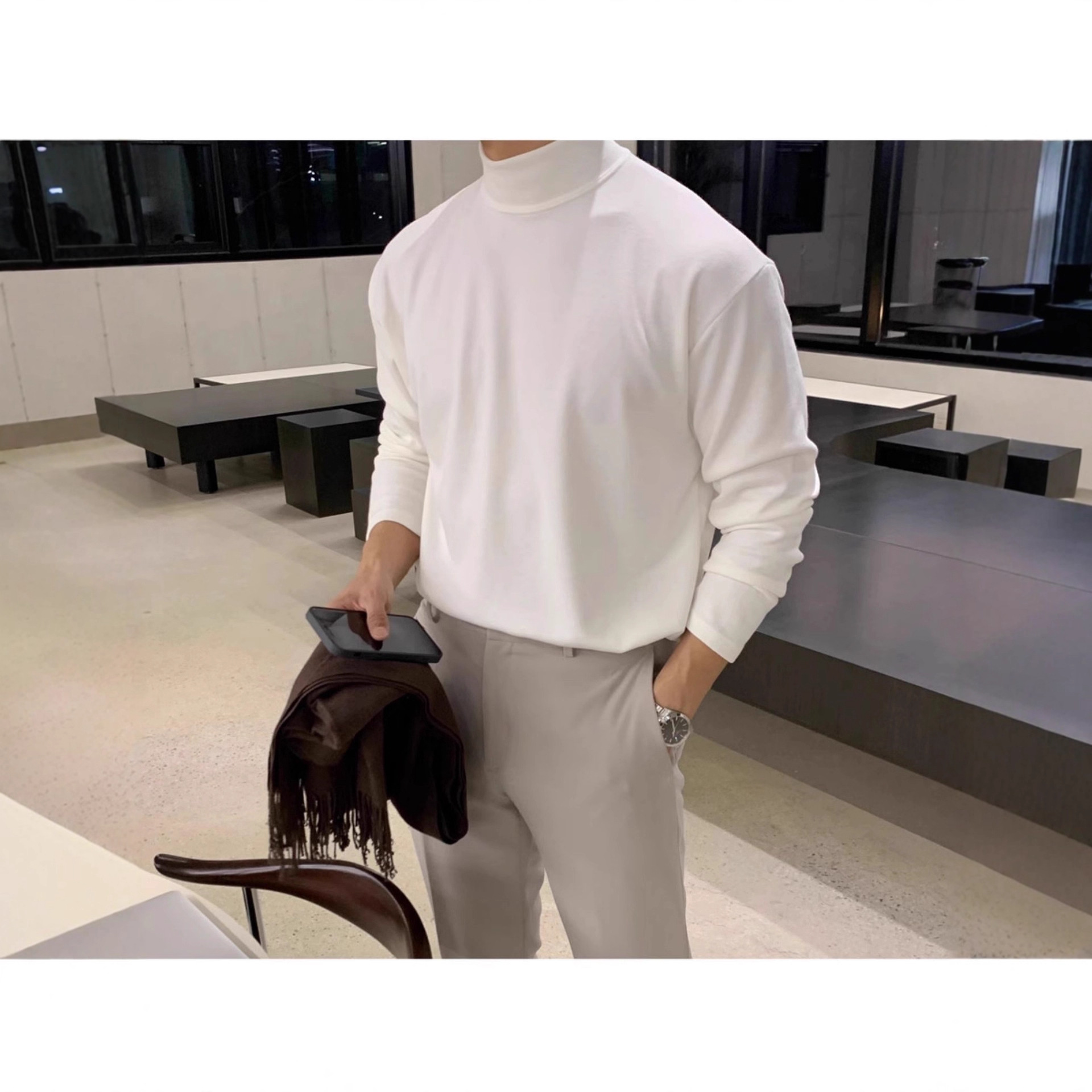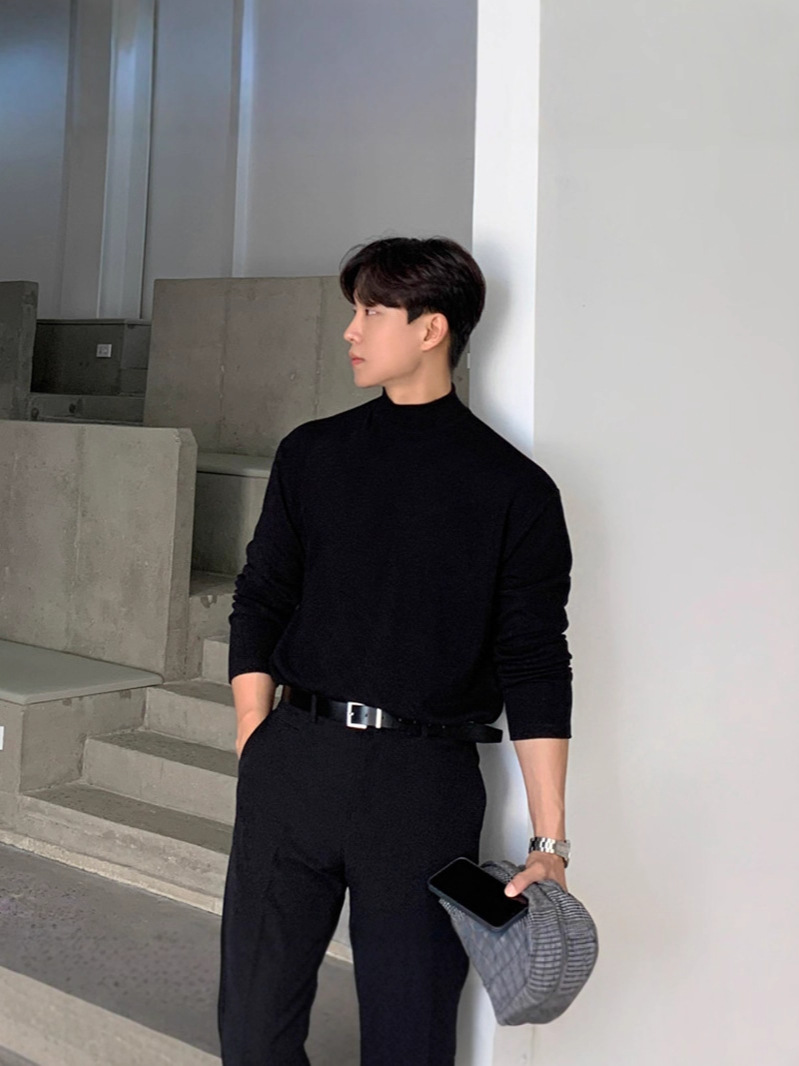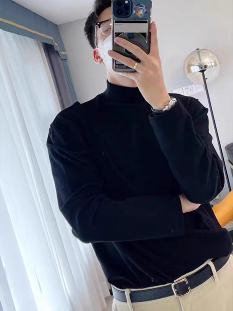 纯棉半高领打底衫男纯棉磨绒保暖长袖T恤中领内搭2025新品高品质