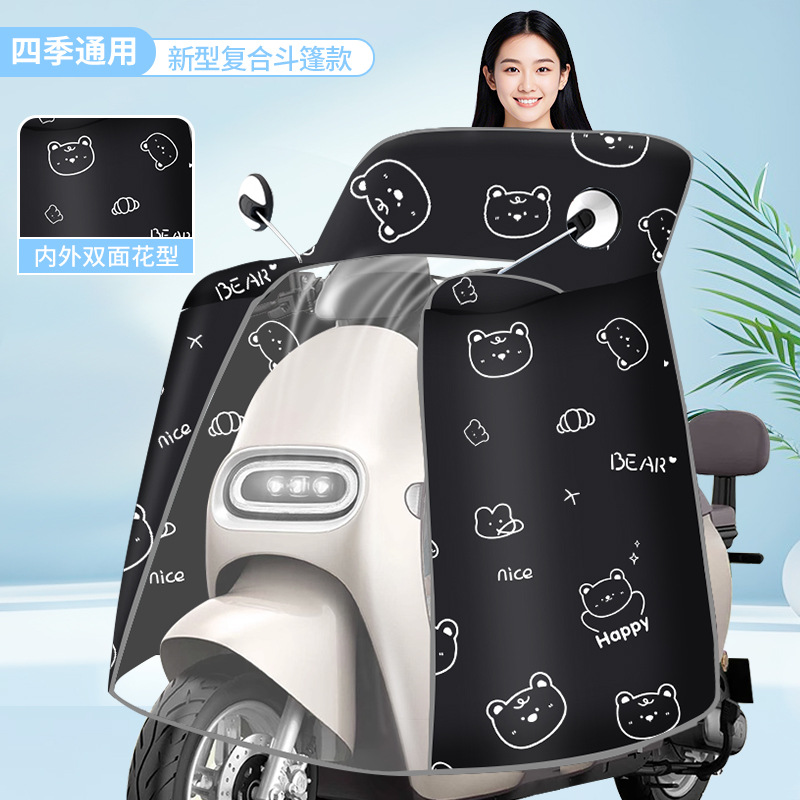 新款电动车春夏四季斗篷全包围挡风被遮阳防晒防风电瓶车挡风被