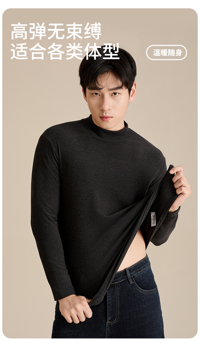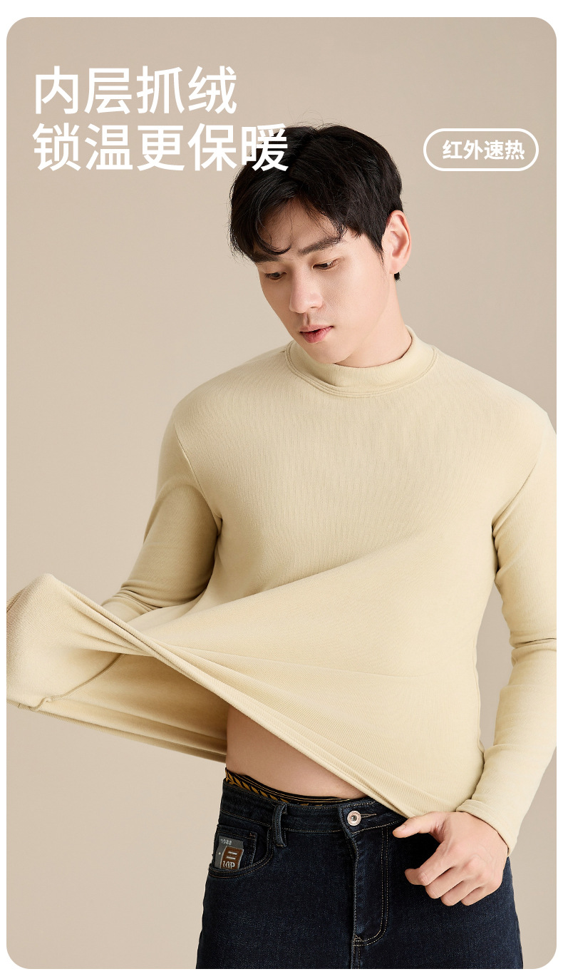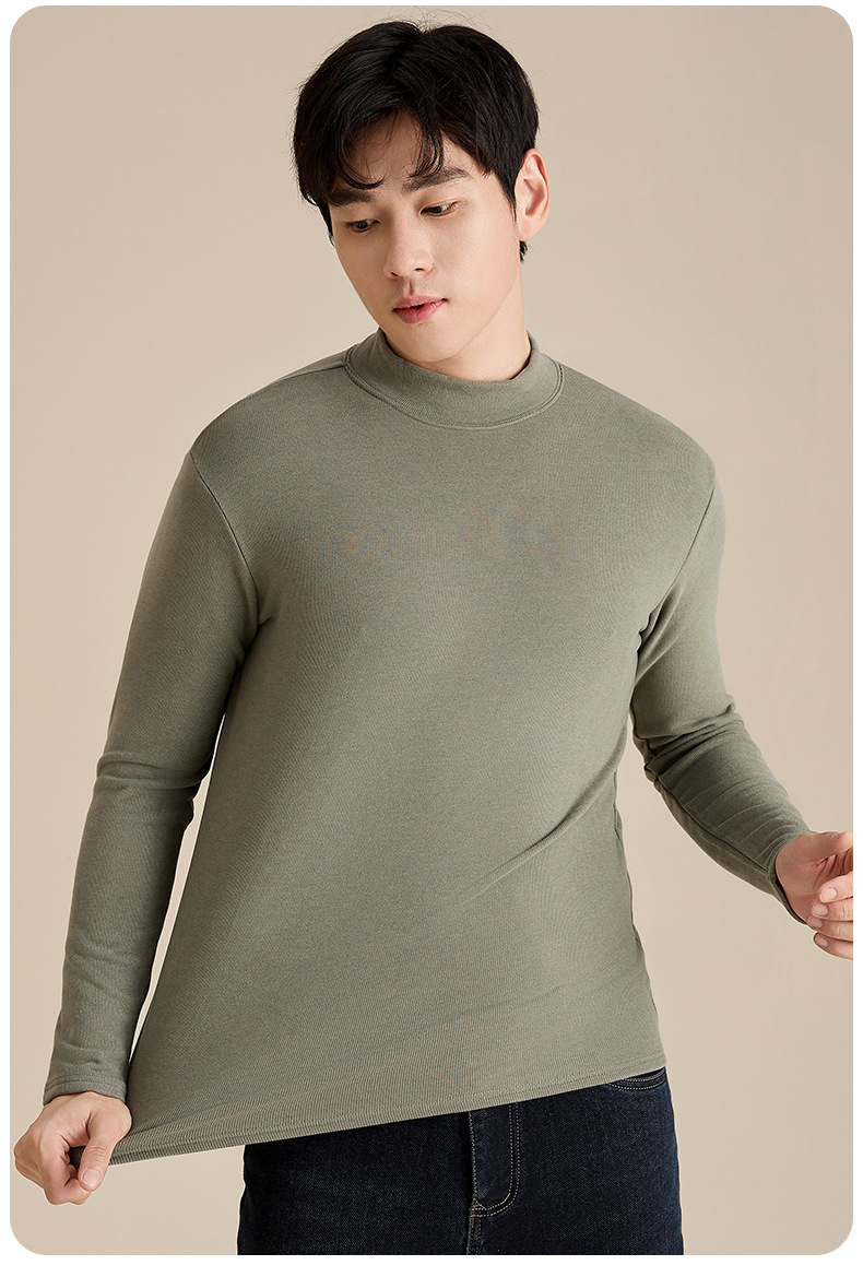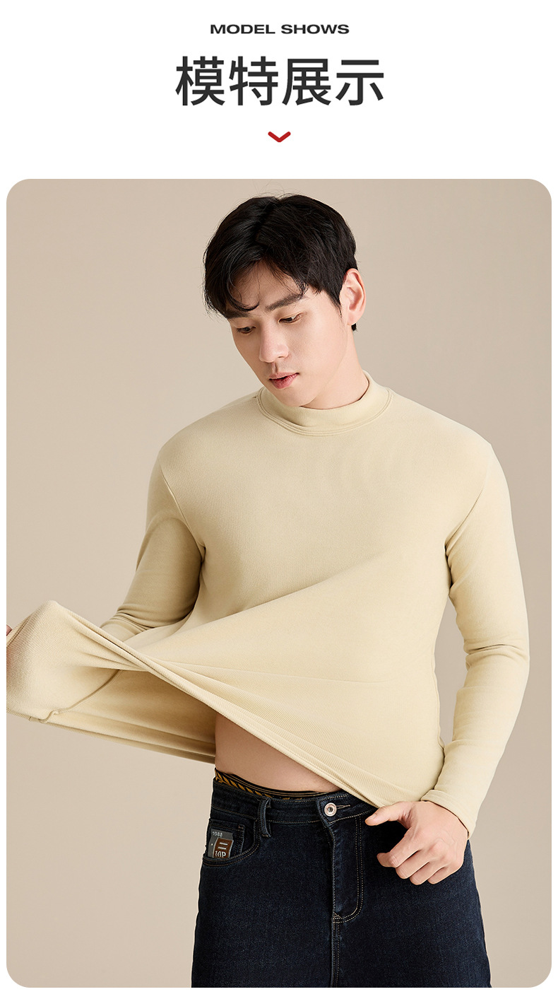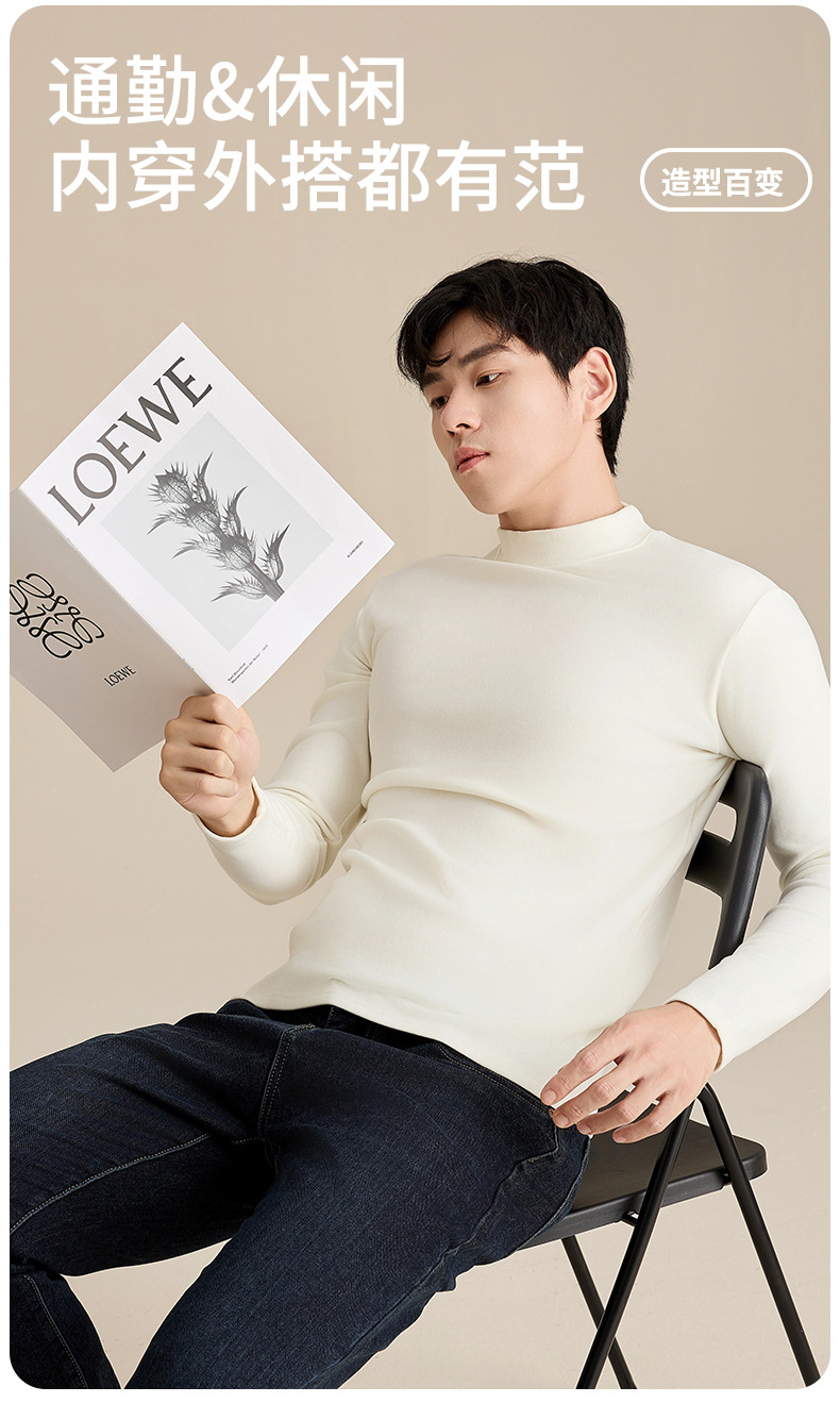 奥薇姿新款宽松圆领长袖t恤秋冬加绒纯色德绒玻尿酸打底衫男