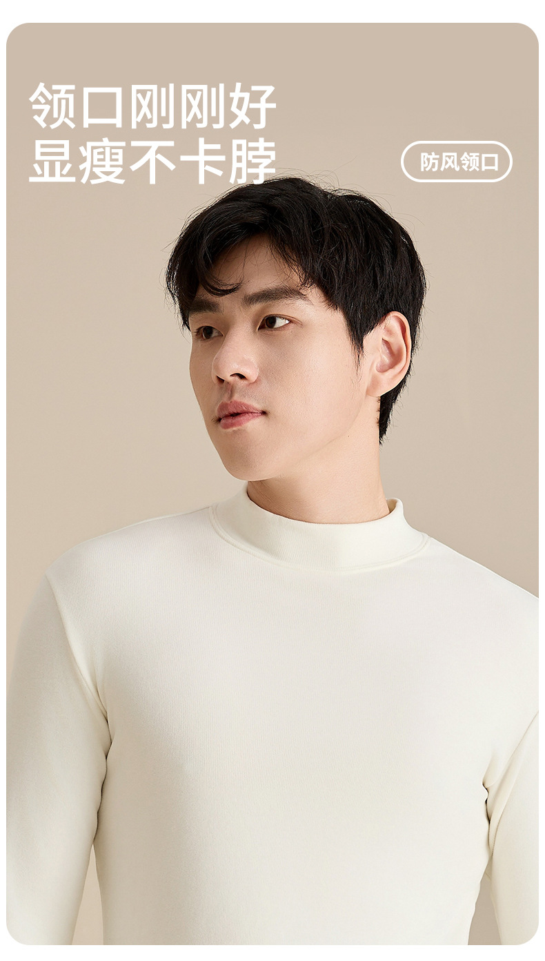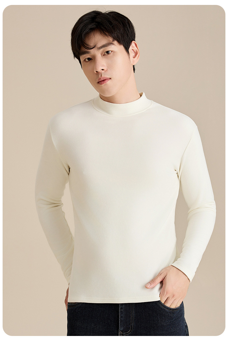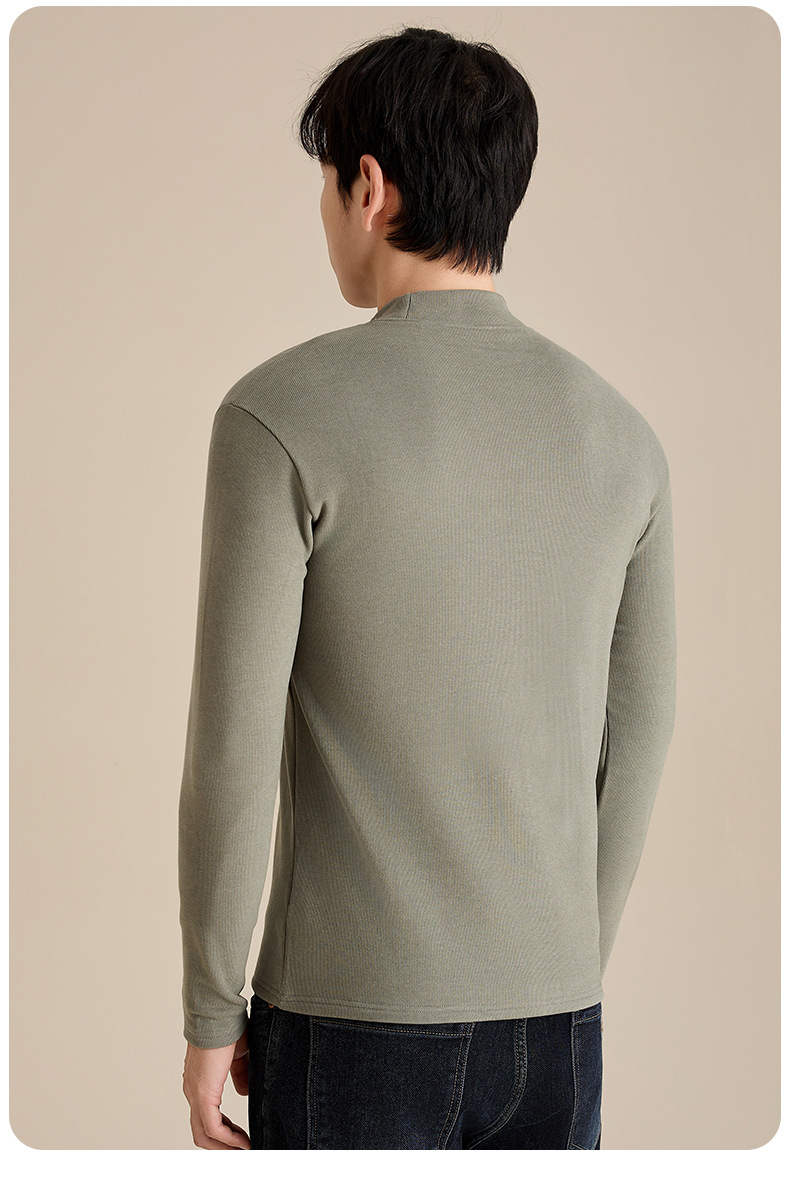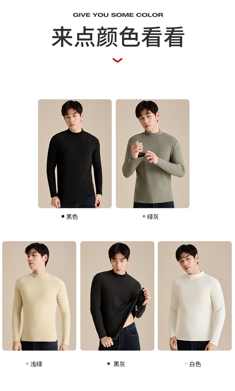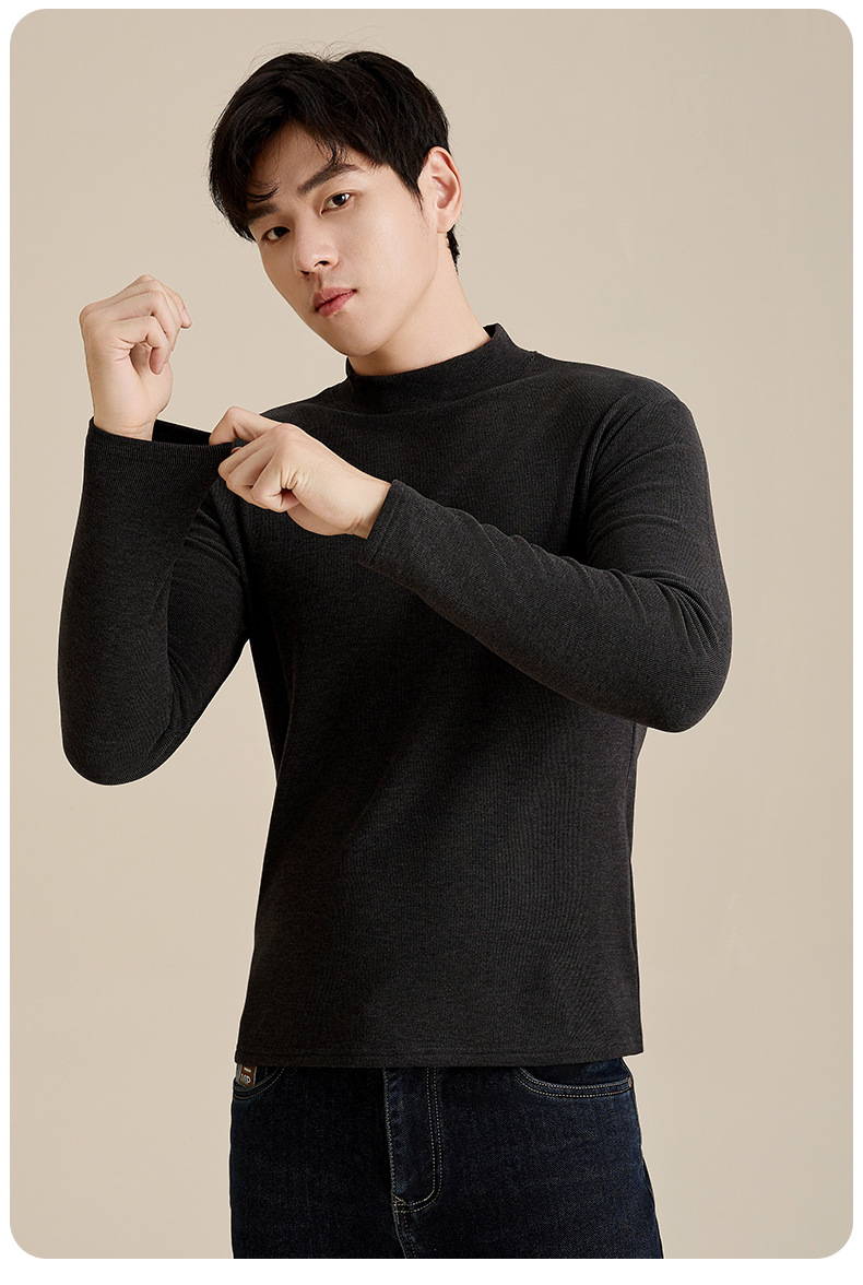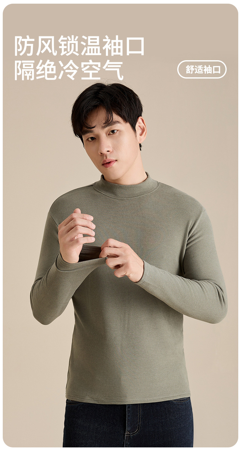 奥薇姿新款宽松圆领长袖t恤秋冬加绒纯色德绒玻尿酸打底衫男
