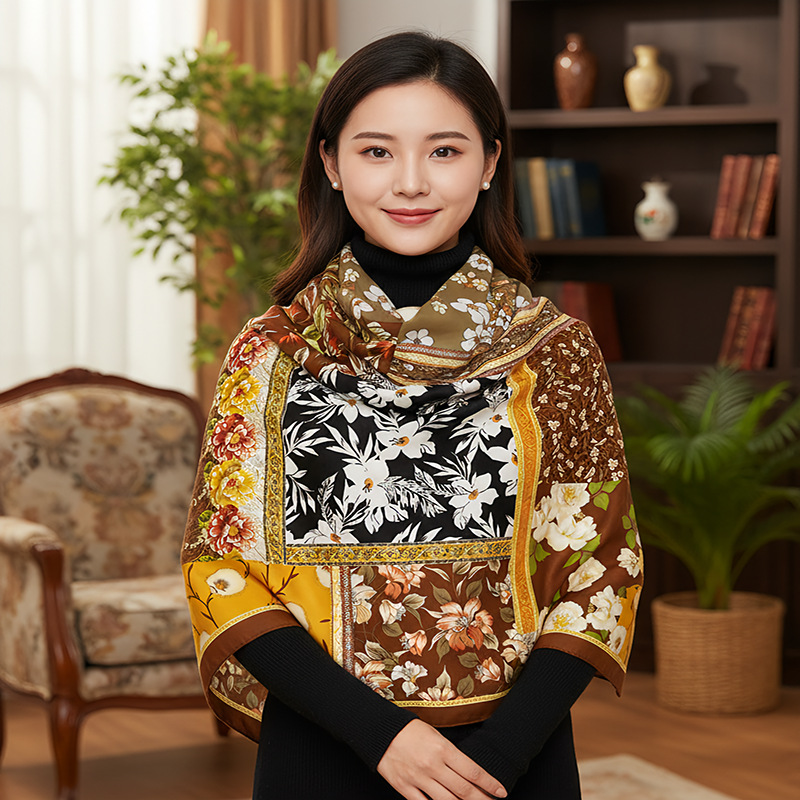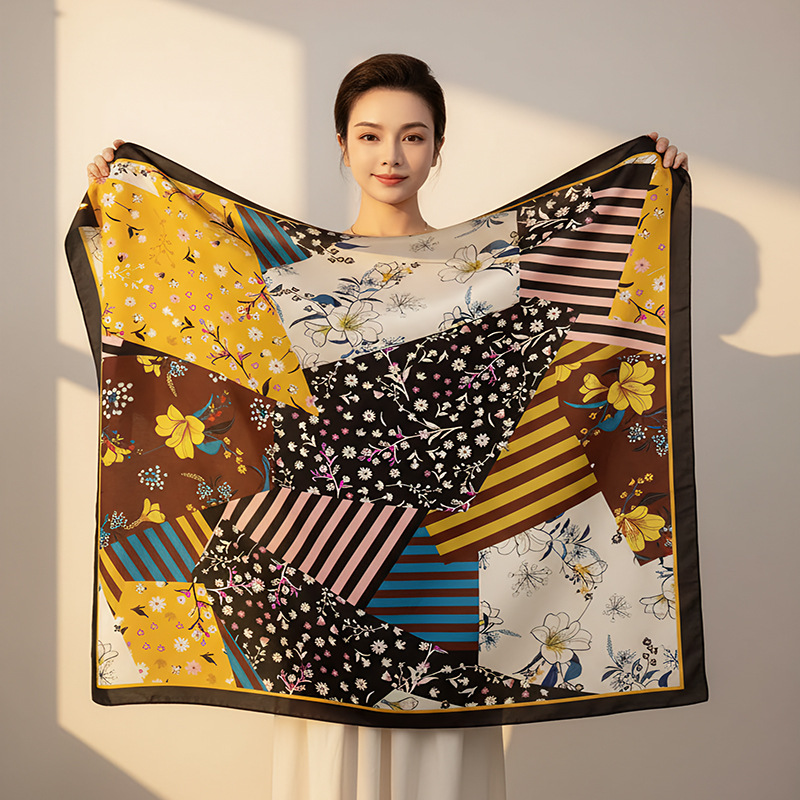 2025年春夏秋季围巾围脖棉麻手感小方巾百搭披肩防晒丝巾小雏菊