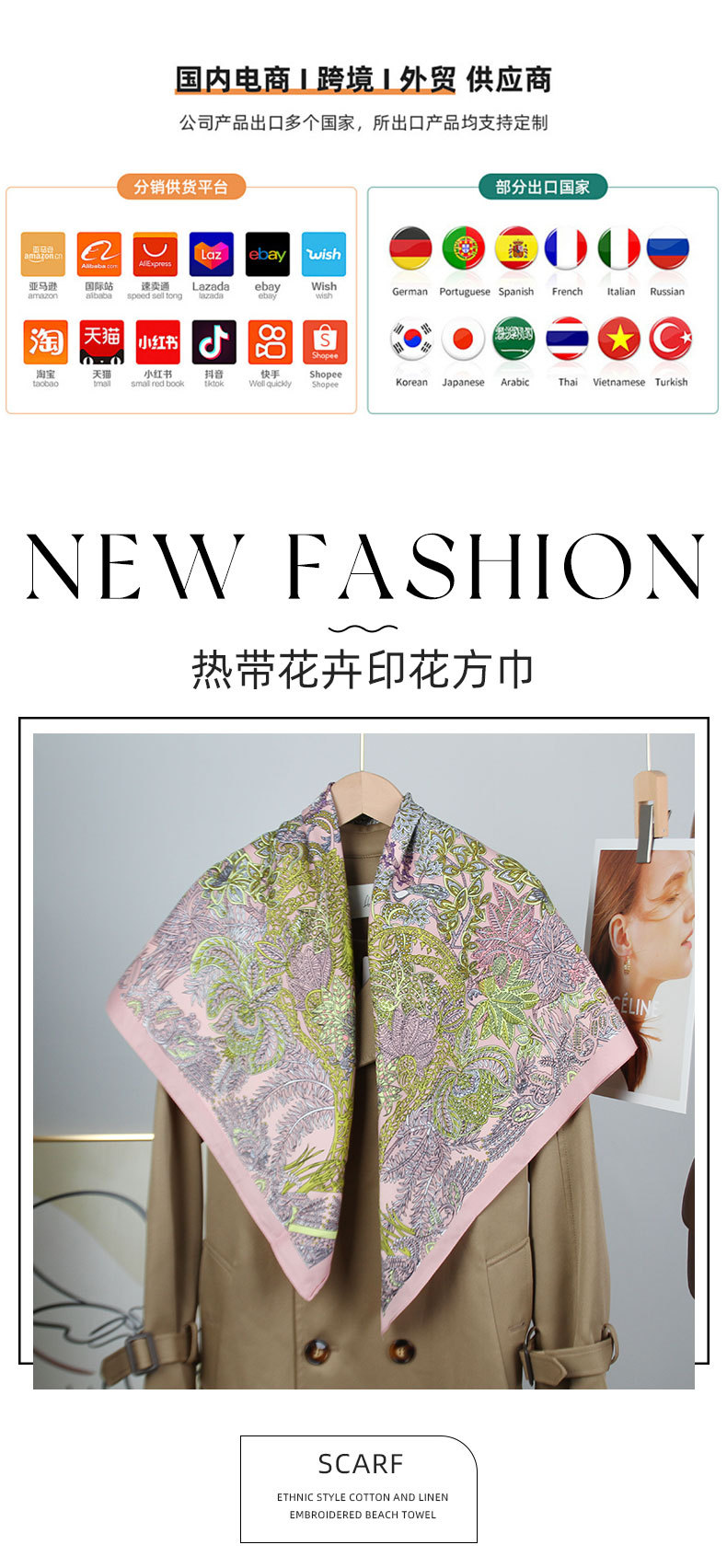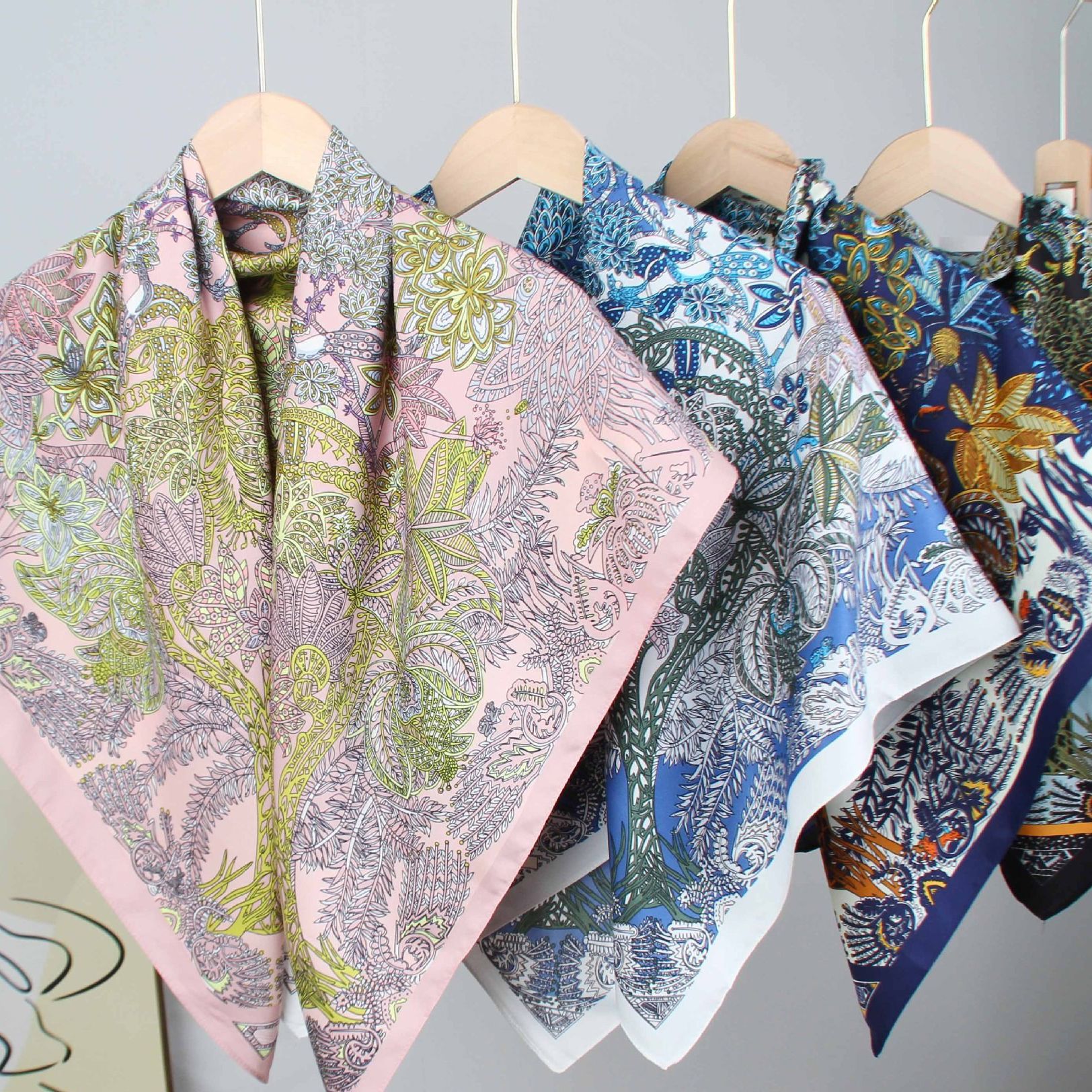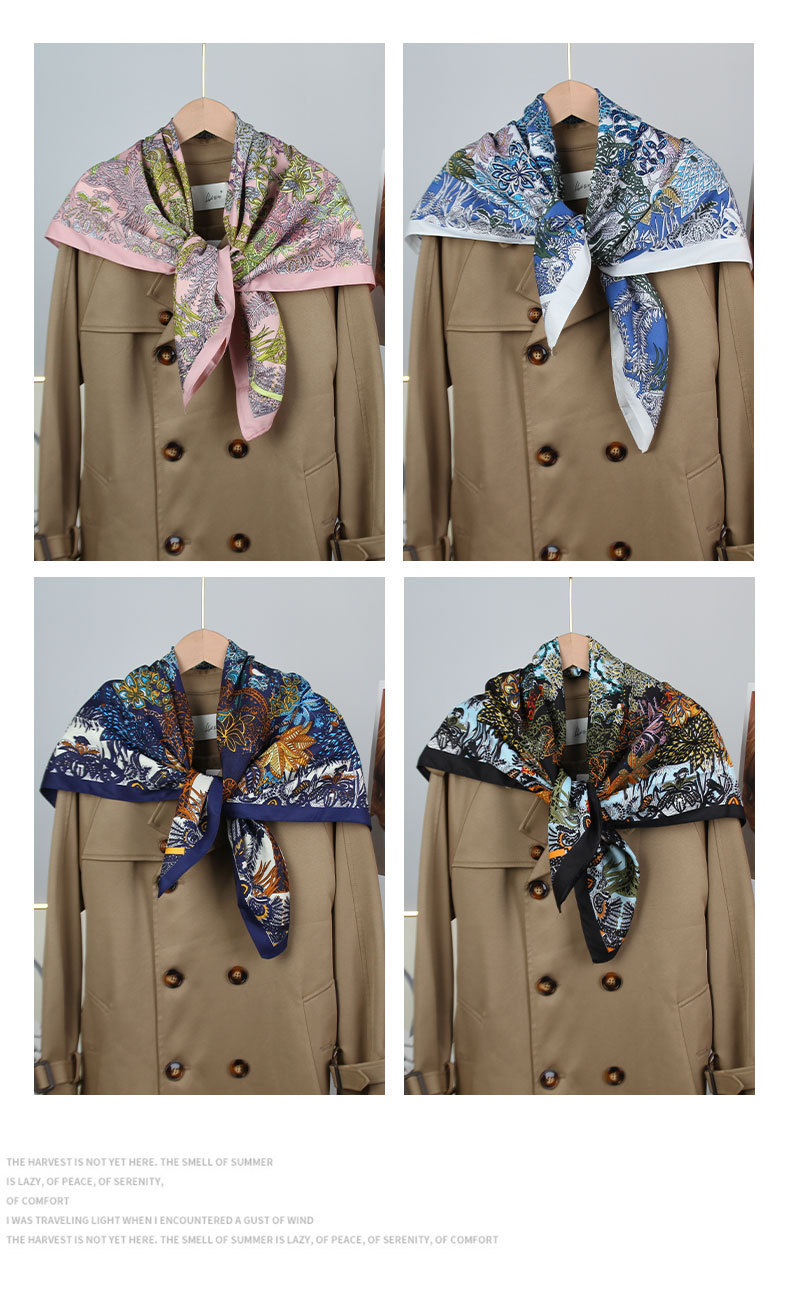 新款欧美风轻奢印花围巾斜纹绸花卉印花丝巾90*90大方巾披肩跨境