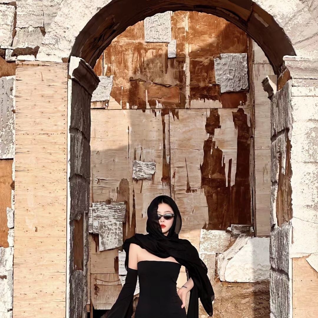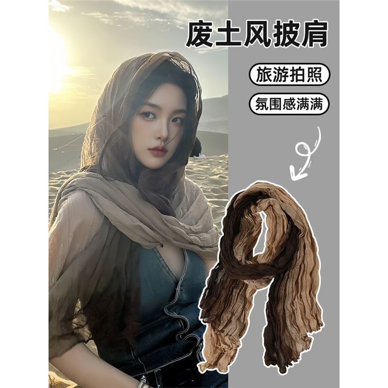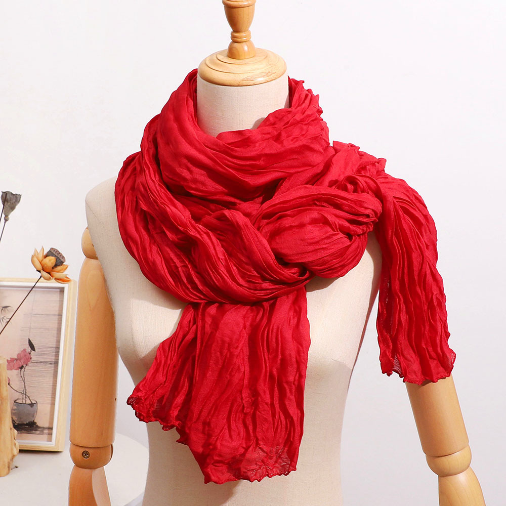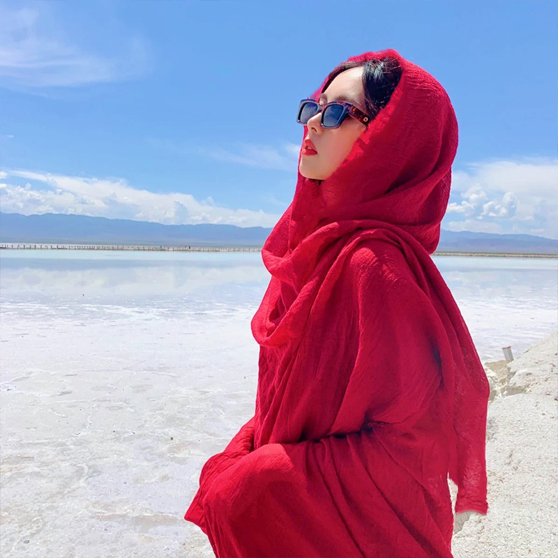 青海茶卡盐湖旅游拍照大红色棉麻围巾女沙漠防晒披肩海边旅游纱巾