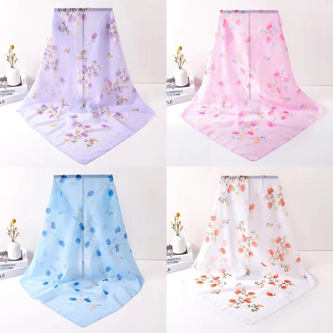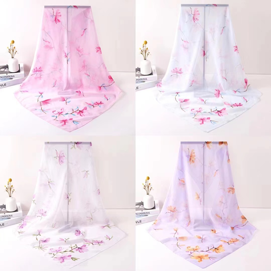 韩版春夏季正方形四方纱巾围巾女冬季雪纺丝巾装饰薄款1米大方巾