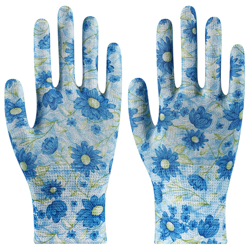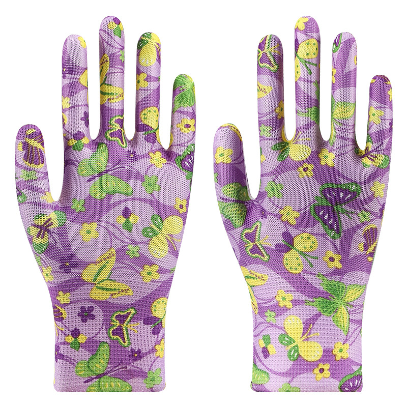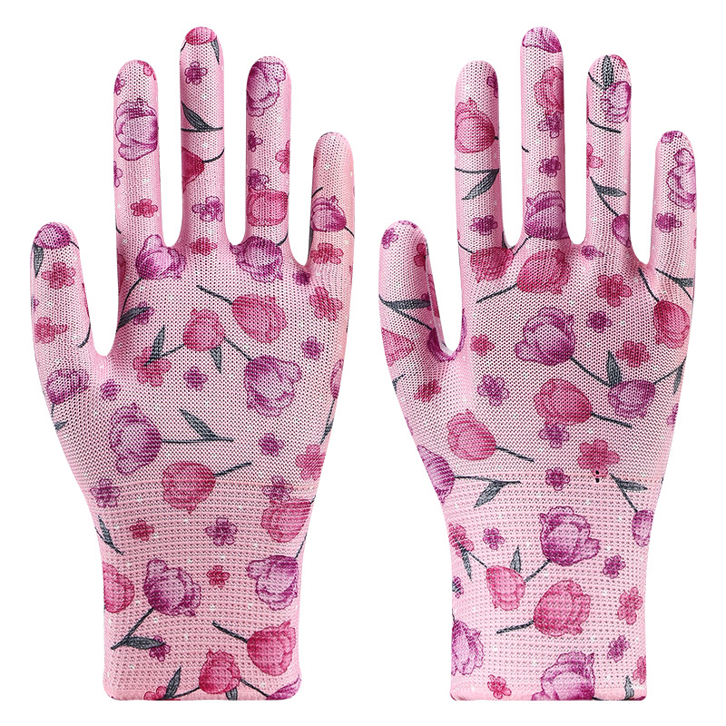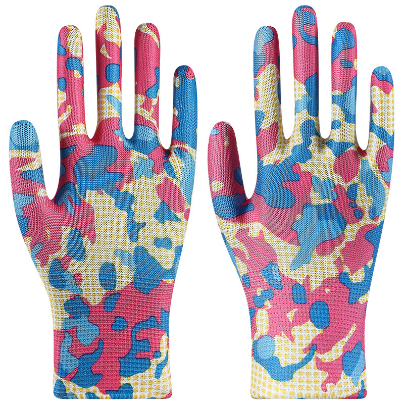 印花尼龙劳保手套批发轻薄透气耐磨园艺采摘工作防护多色花色手套