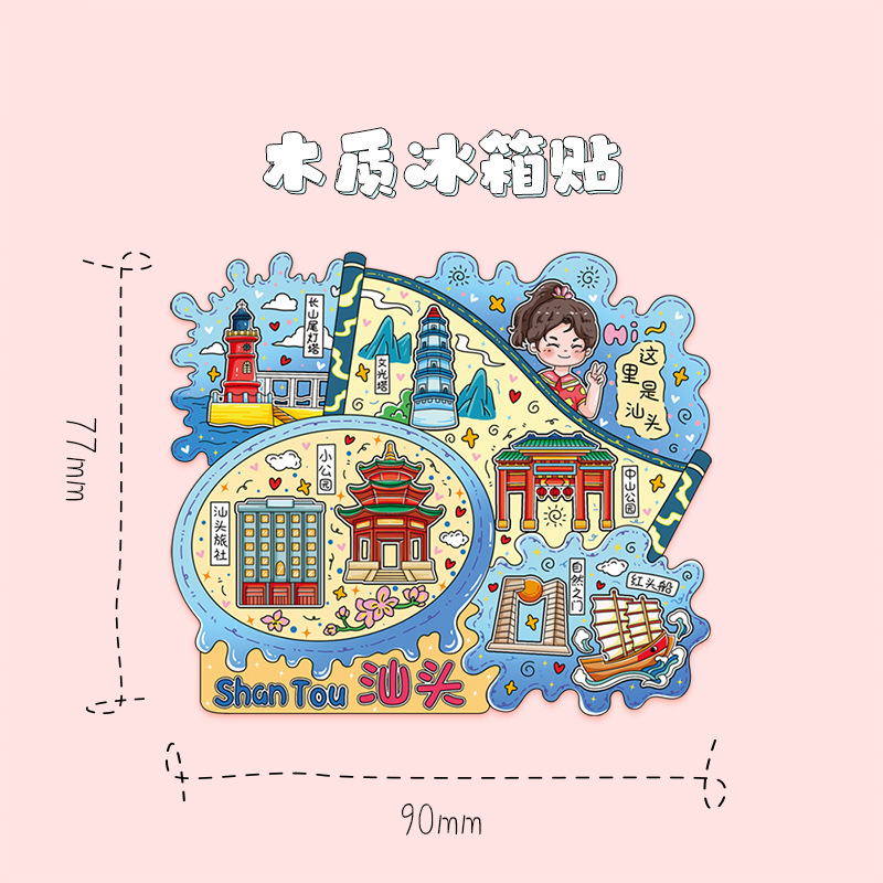 广东汕头老城码头南澳岛木质金属文创磁吸旅游纪念建筑城市冰箱贴