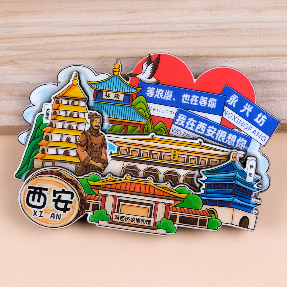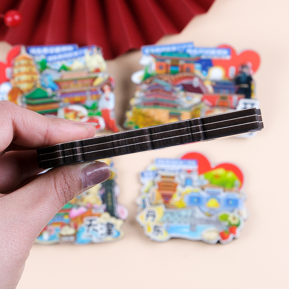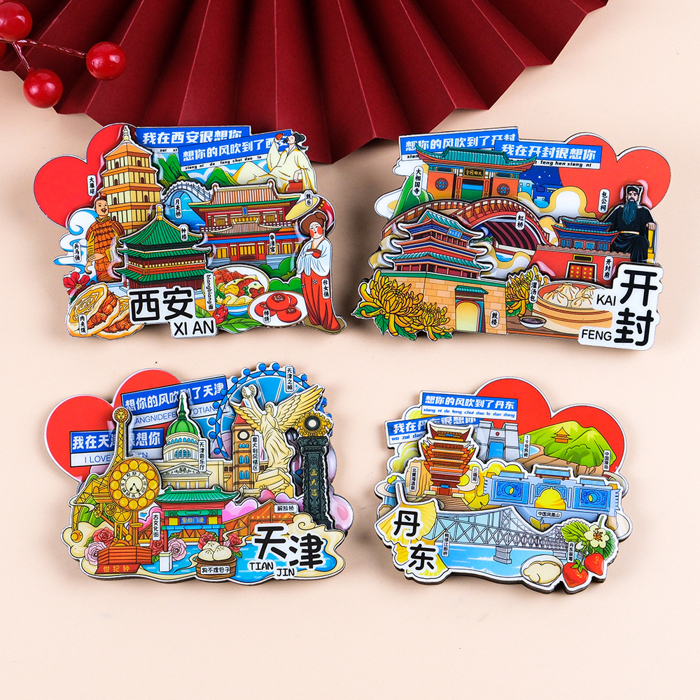 源头工厂批发全国城市冰箱贴磁贴国潮旅游盲盒路牌木质立体冰箱贴