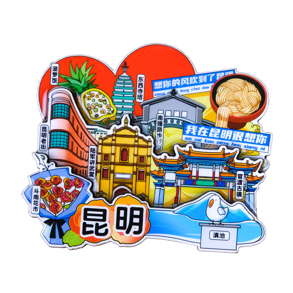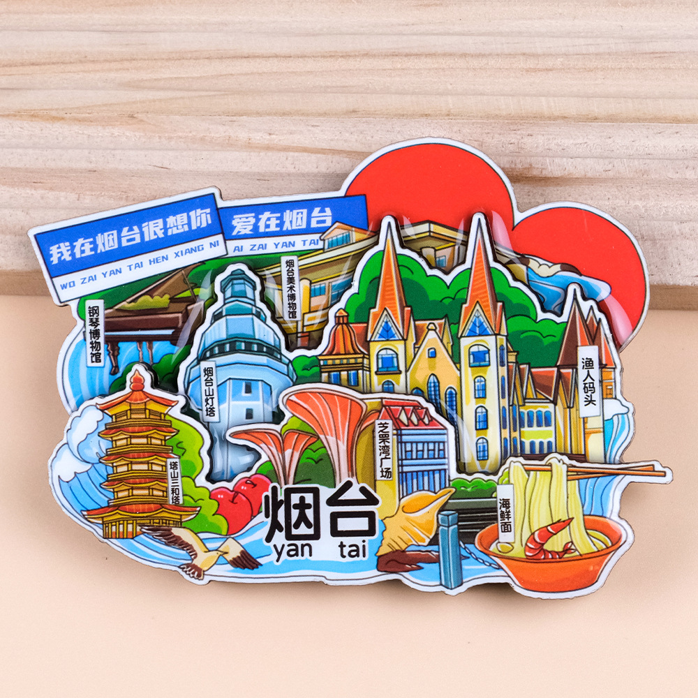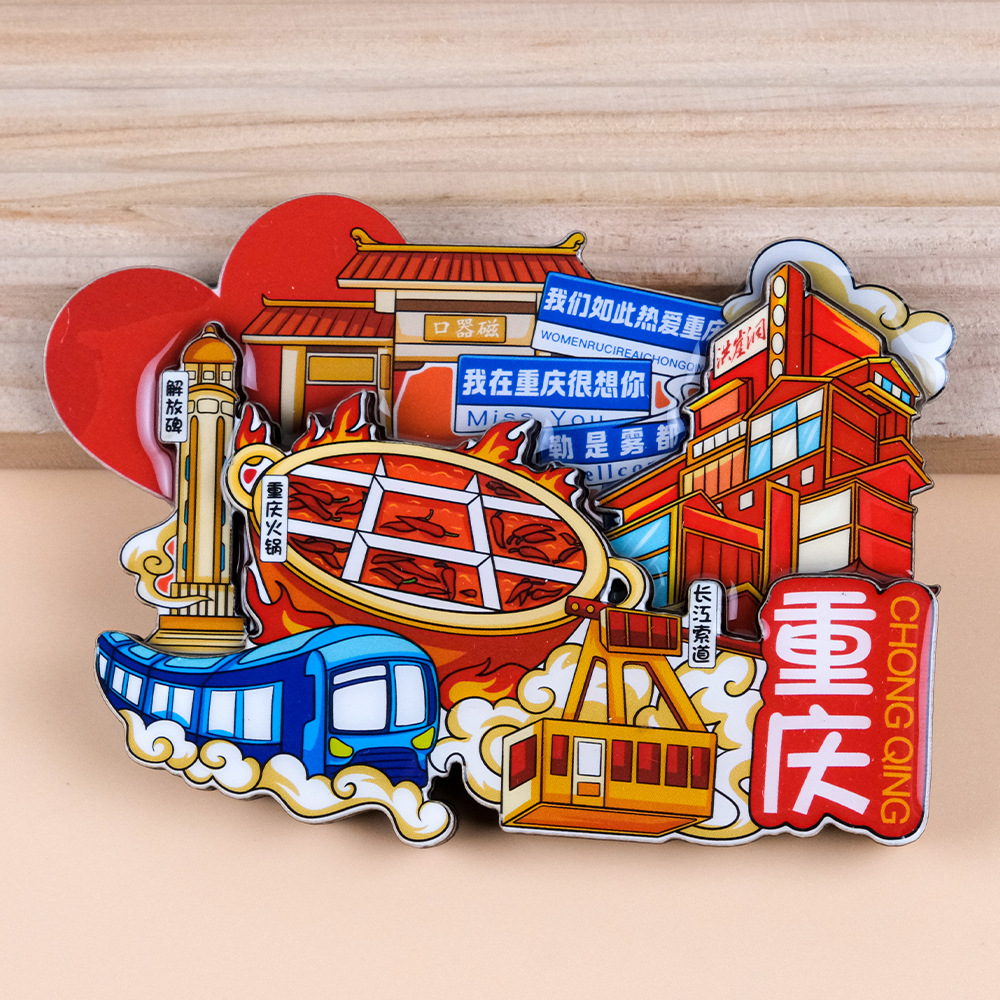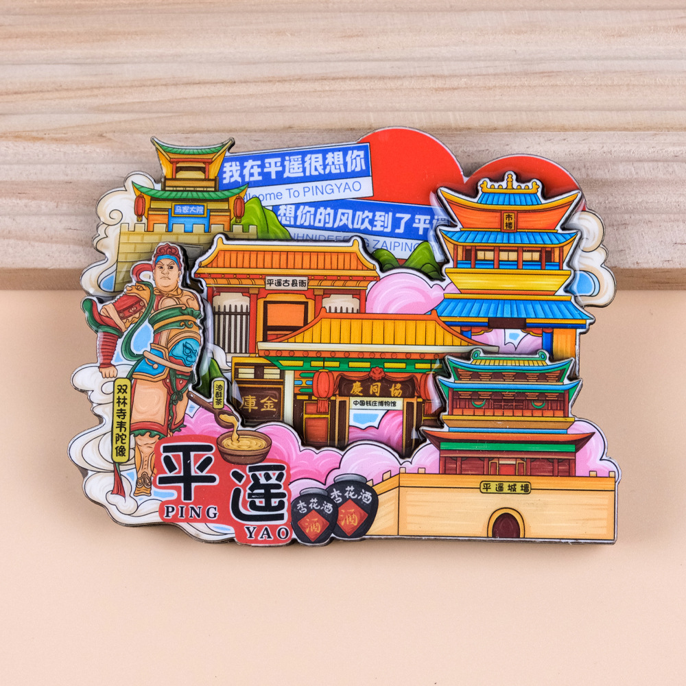 源头工厂批发全国城市冰箱贴磁贴国潮旅游盲盒路牌木质立体冰箱贴