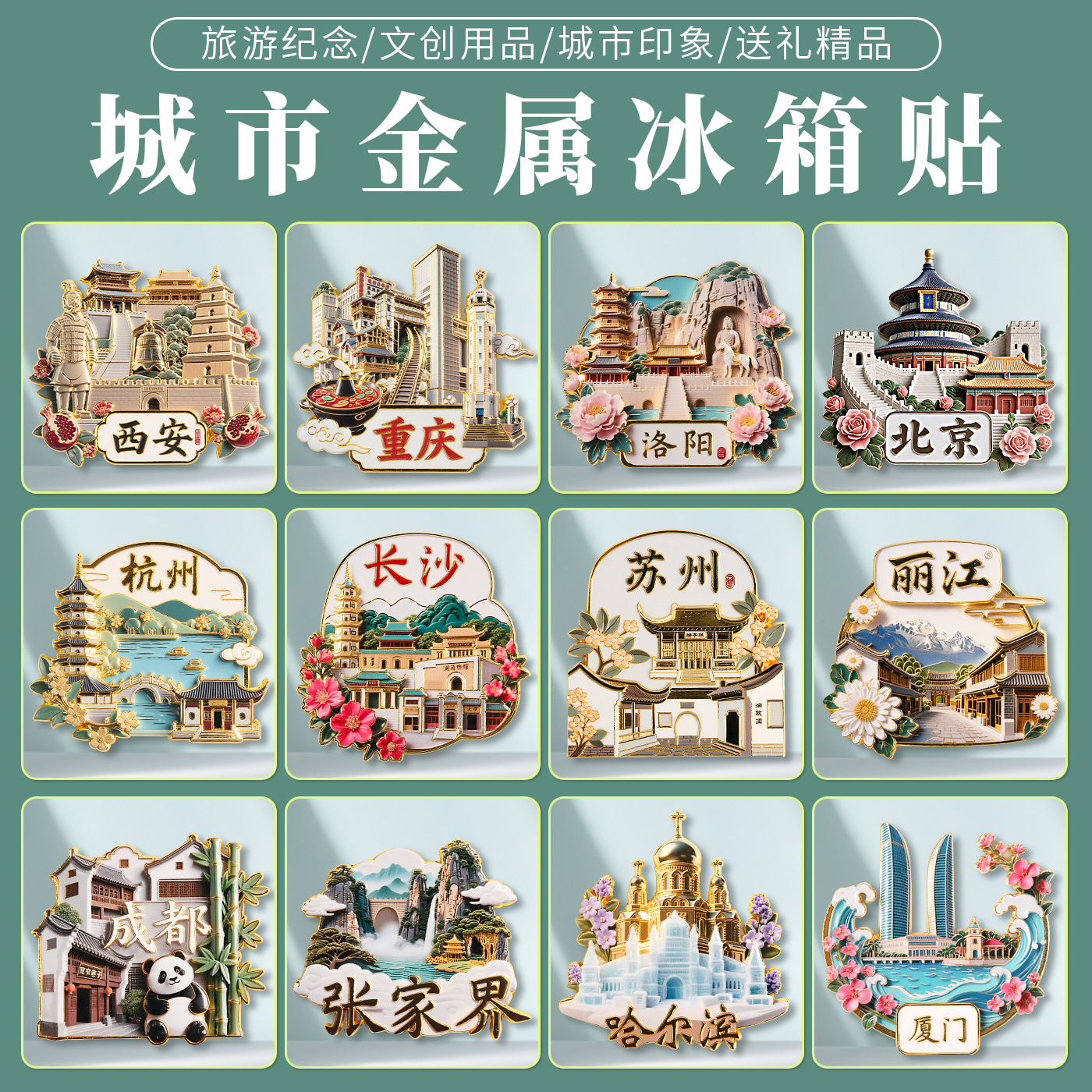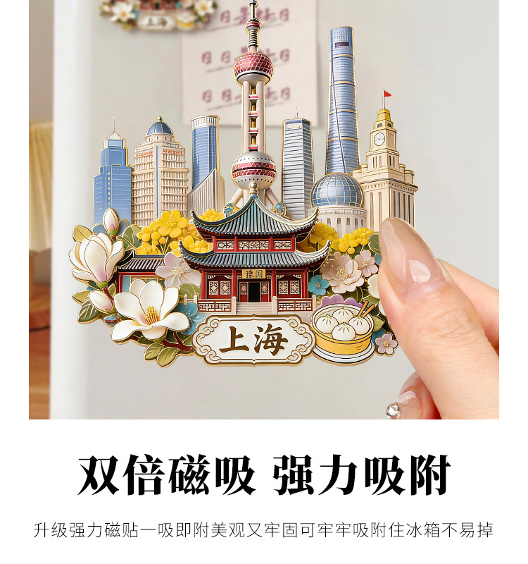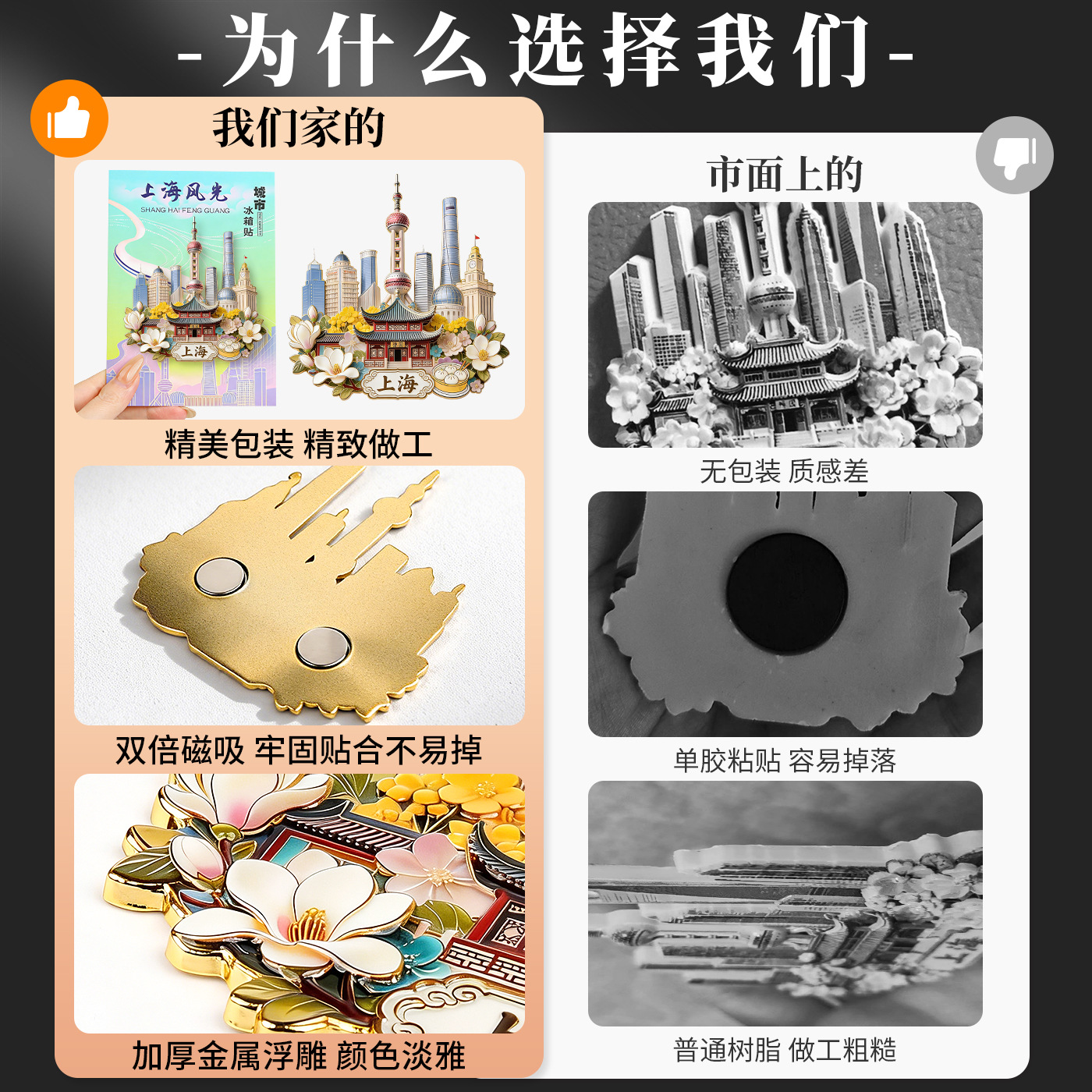上海金属浮雕冰箱贴磁吸东方明珠外滩网红旅游纪念品城市地标礼物