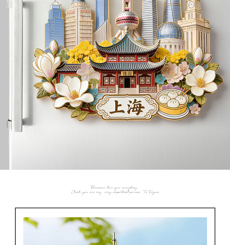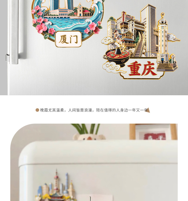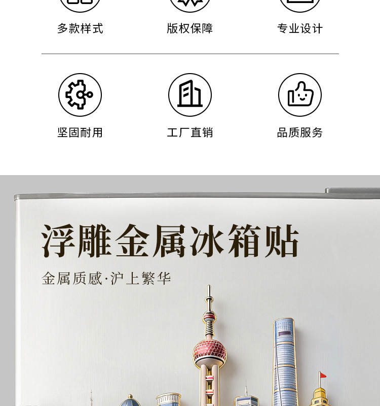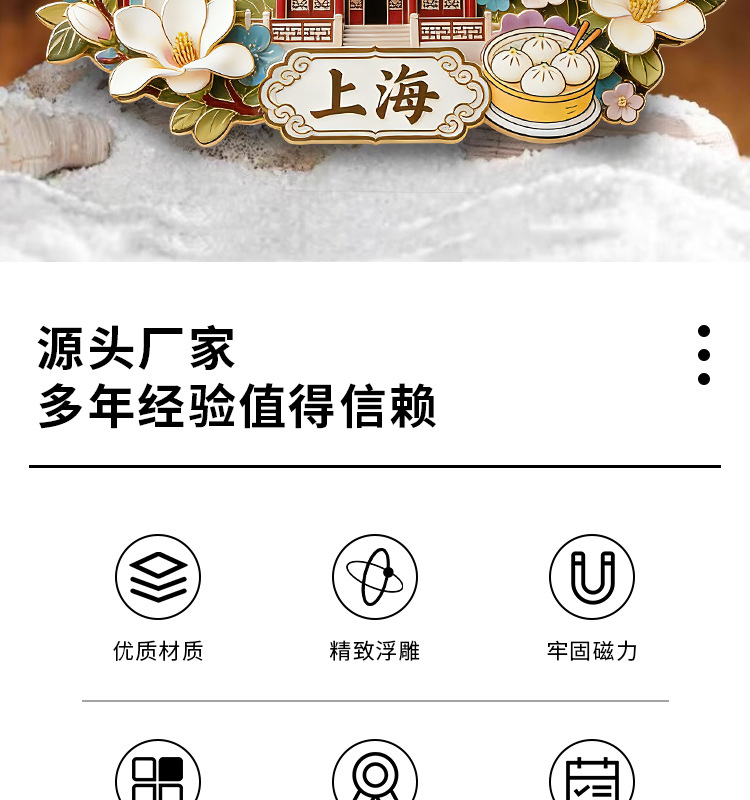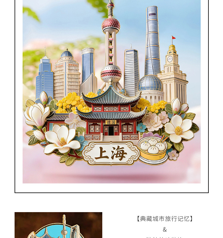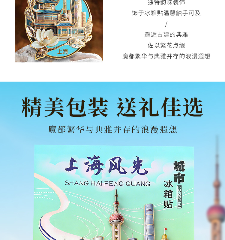 上海金属浮雕冰箱贴磁吸东方明珠外滩网红旅游纪念品城市地标礼物