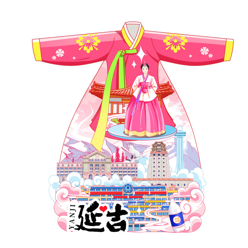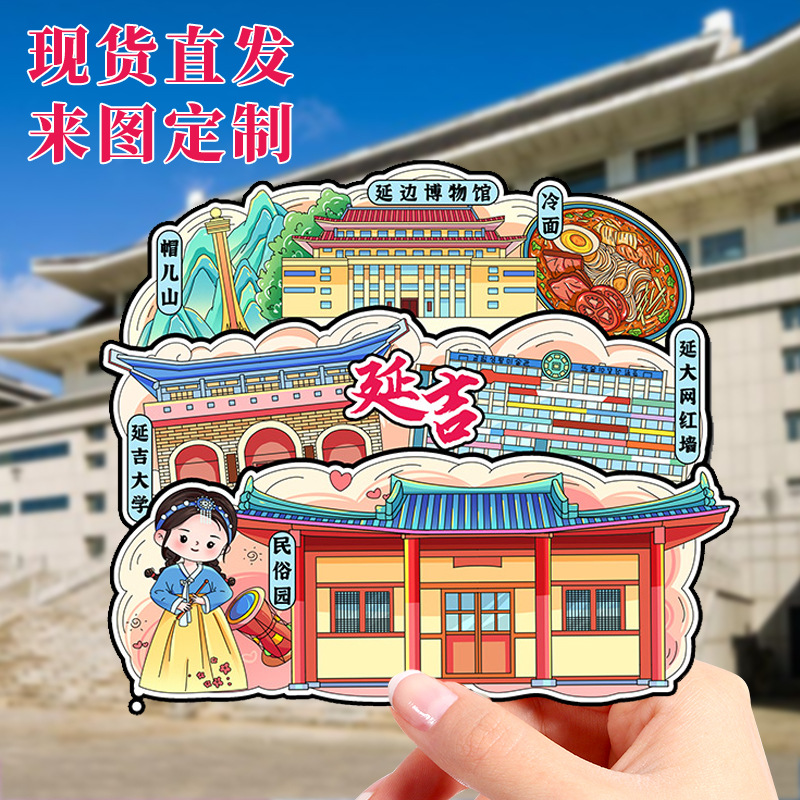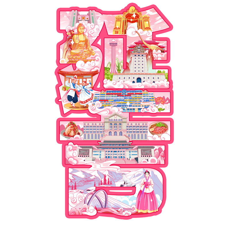 延吉朝鲜民俗园文创木质国潮冰箱贴磁吸三层立体旅游纪念品国潮风
