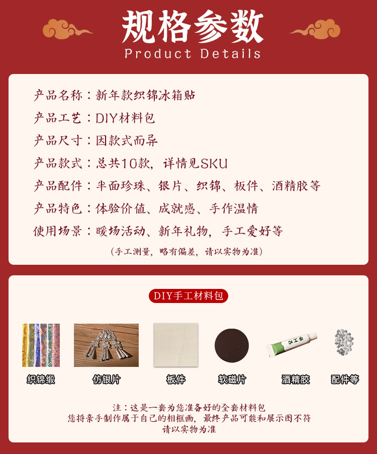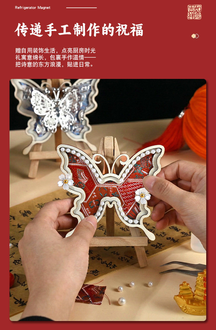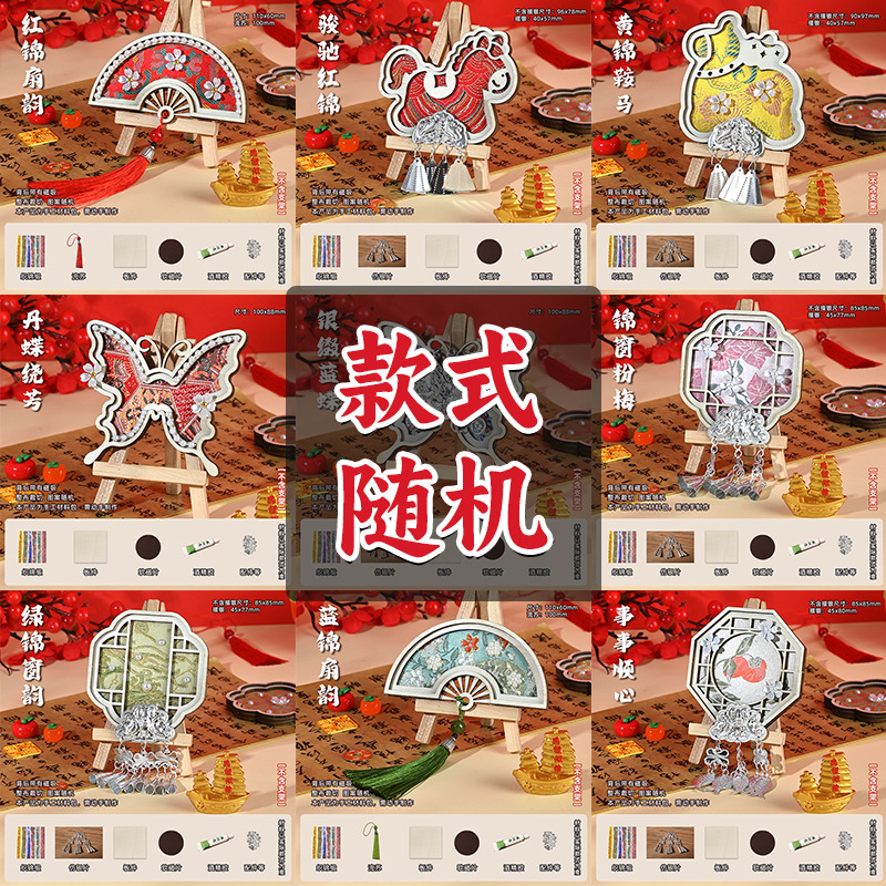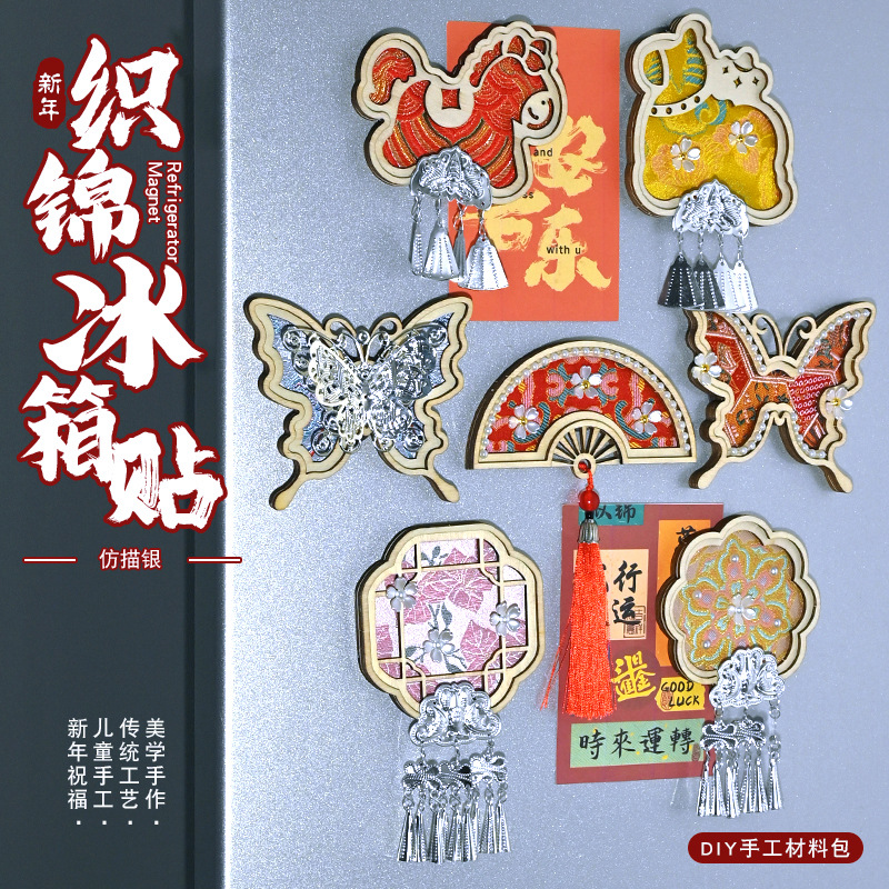 马年冰箱贴手工diy苗银织锦摆件手作宋锦民族风新年元宵文创礼物