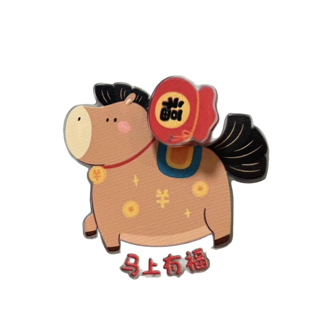 马年新年冰箱贴卡通磁吸冰箱贴 可爱动漫装饰摆件 春节创意礼品