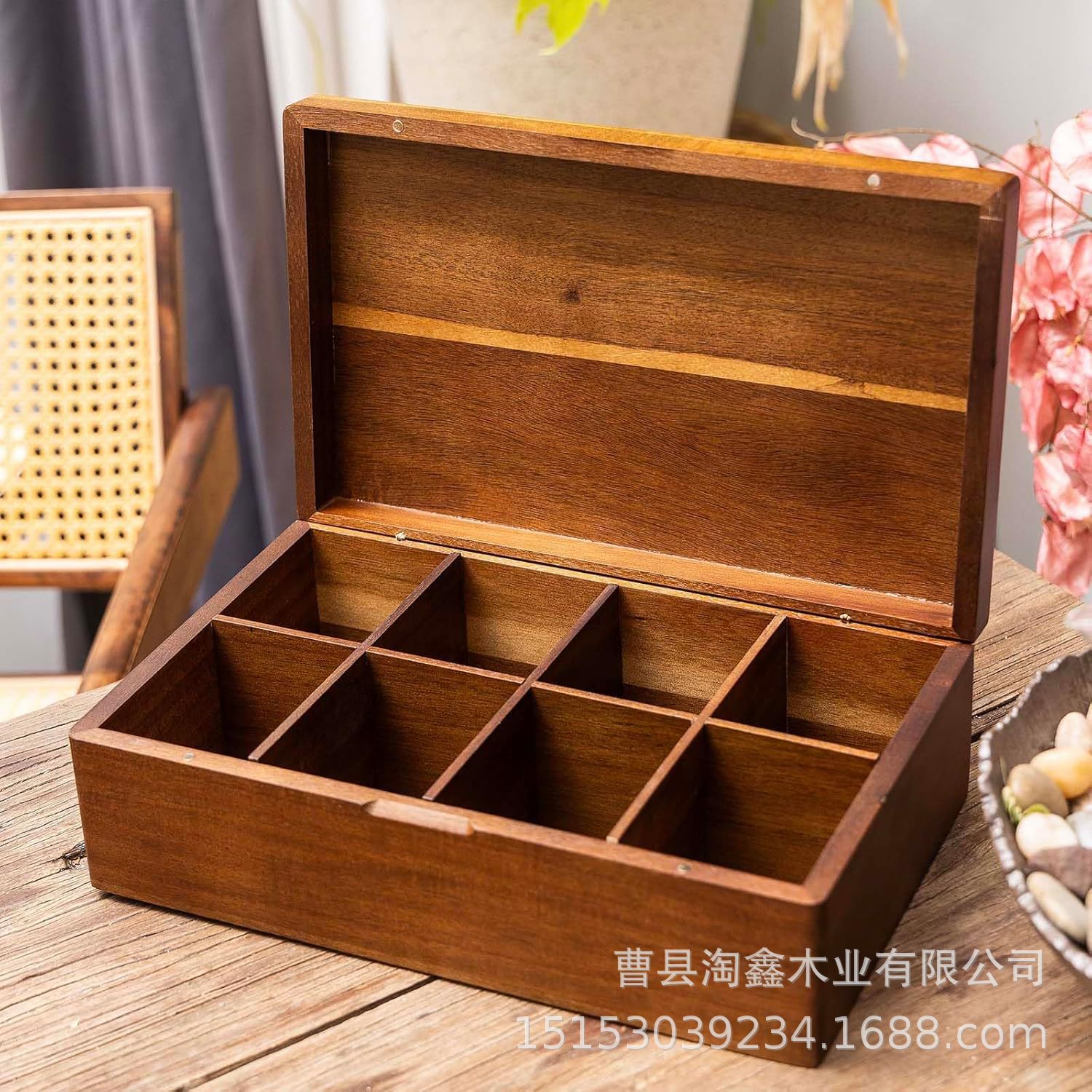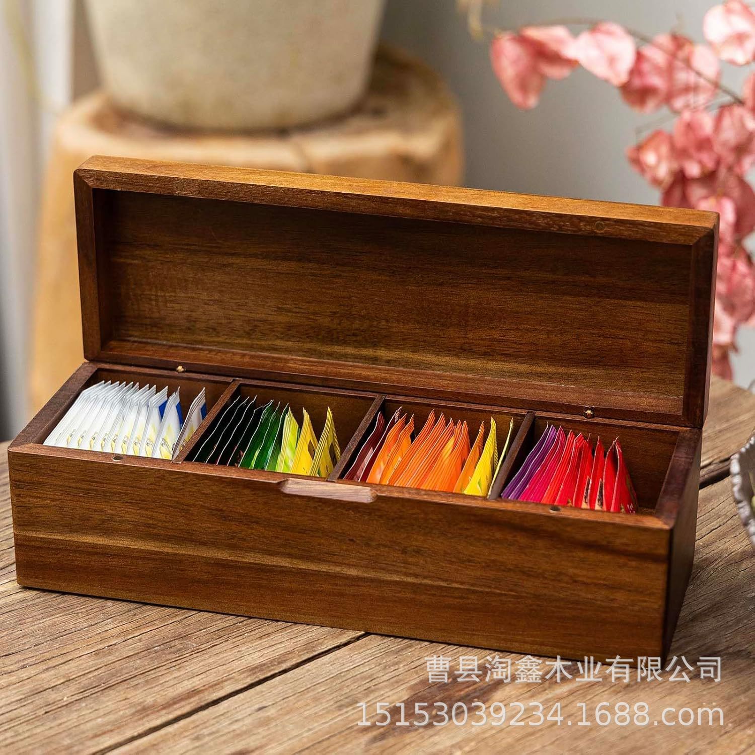 现货茶包收纳盒实木木房子伴手礼盒办公茶水间咖啡包分格翻盖木盒