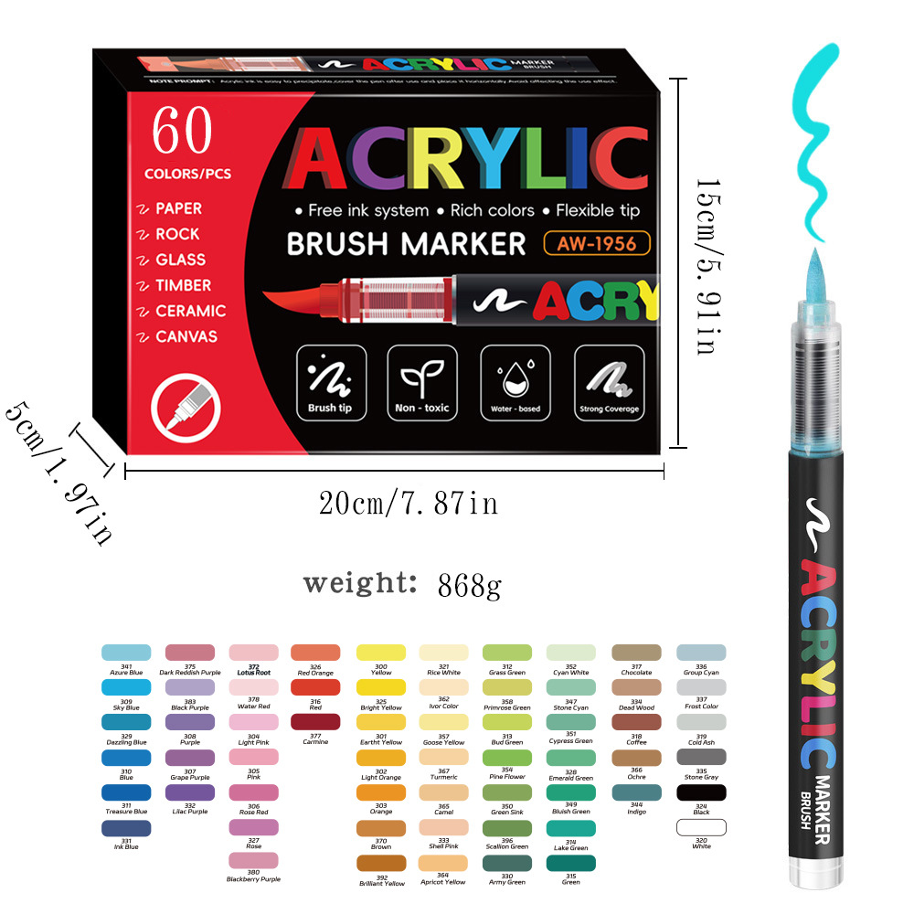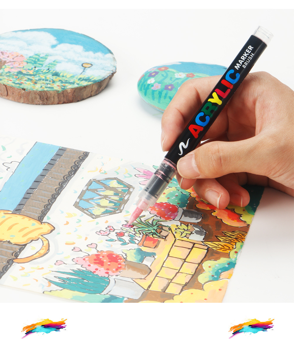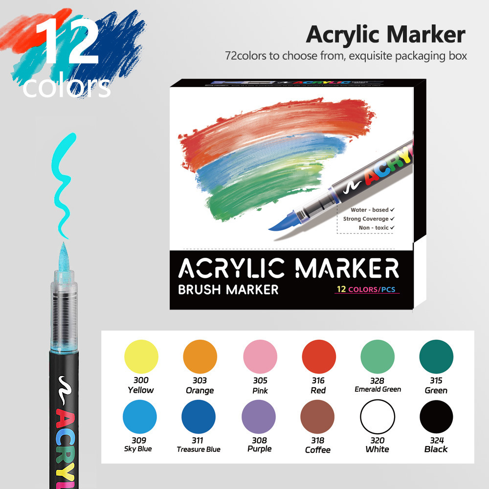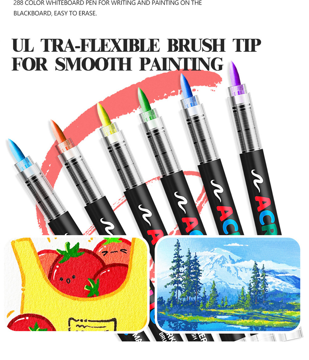 跨境直液式丙烯马克笔240色软头免按压学生美术diy手绘绘画涂鸦笔