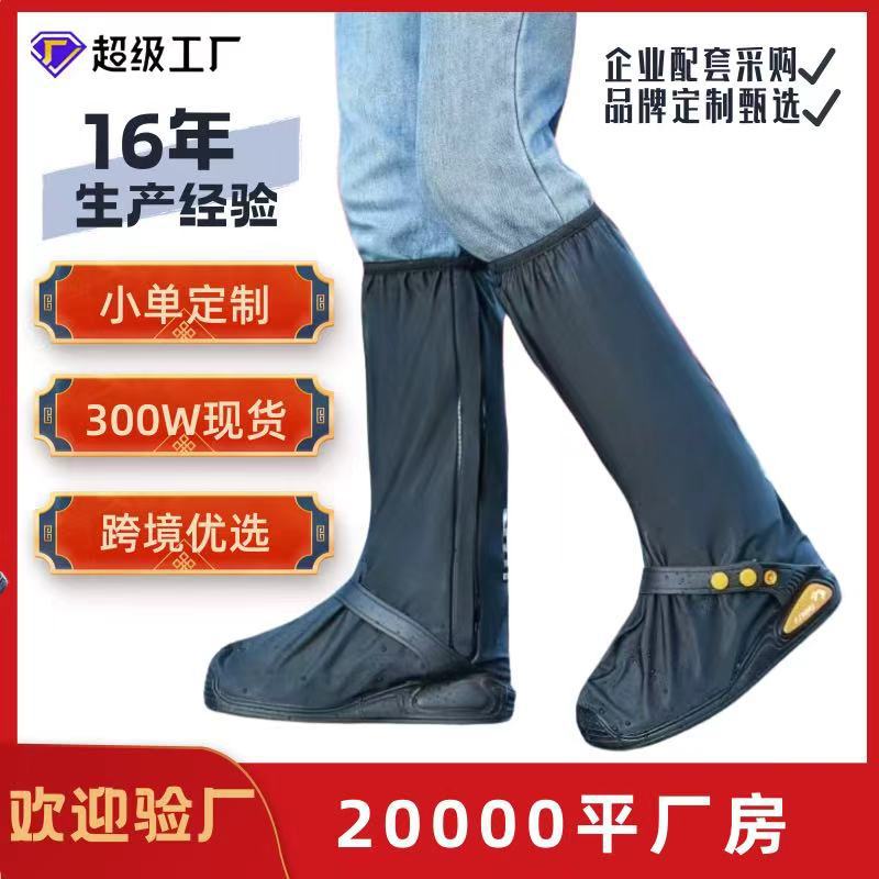 品名:新款骑行户外防雨鞋套全新升级高筒加厚底一体成型绑带底防水雨鞋