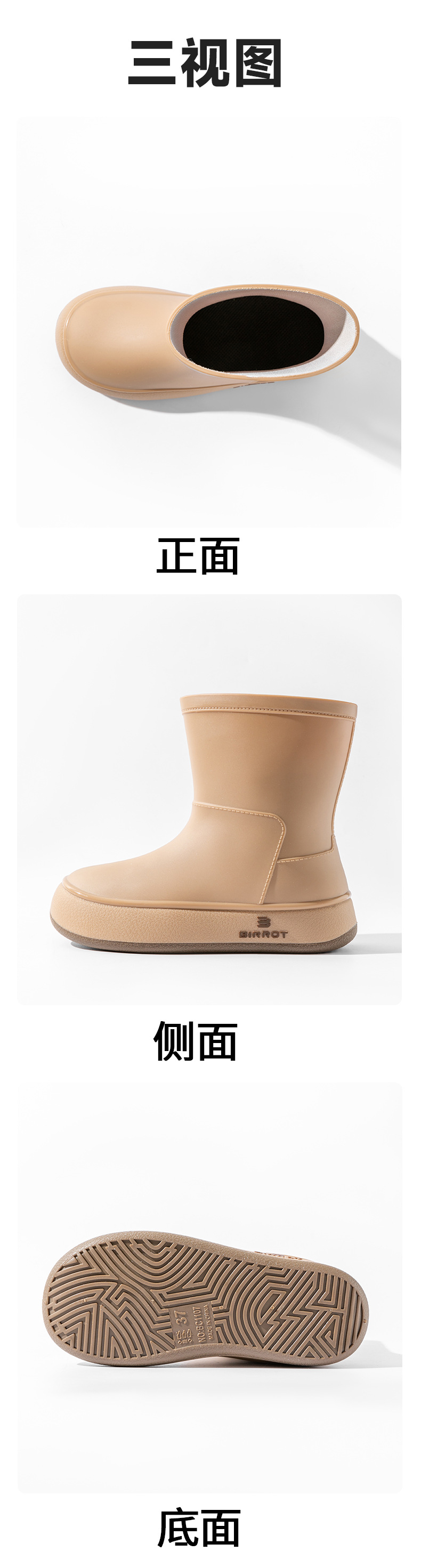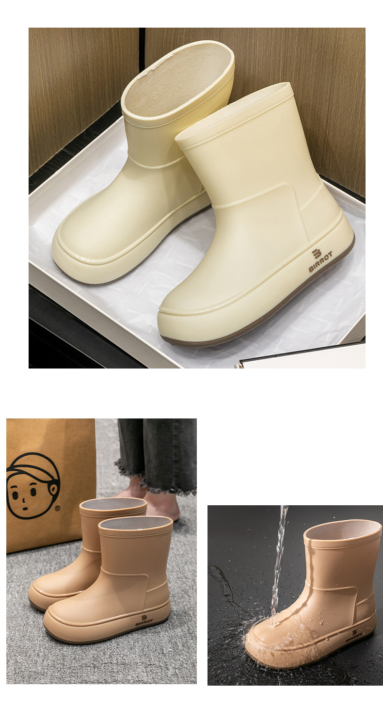 BIRROT环保材质日韩跨境雨鞋可爱中筒水鞋学生胶鞋水靴防水口雨靴