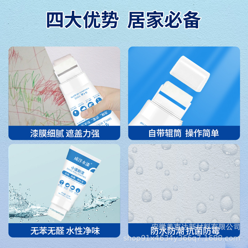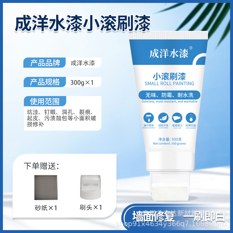 成洋水漆净味小滚刷漆白色墙面翻新改色补墙漆涂鸦手印遮盖修补膏