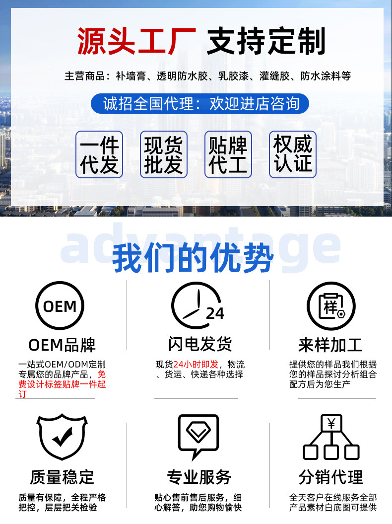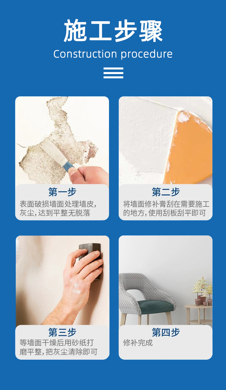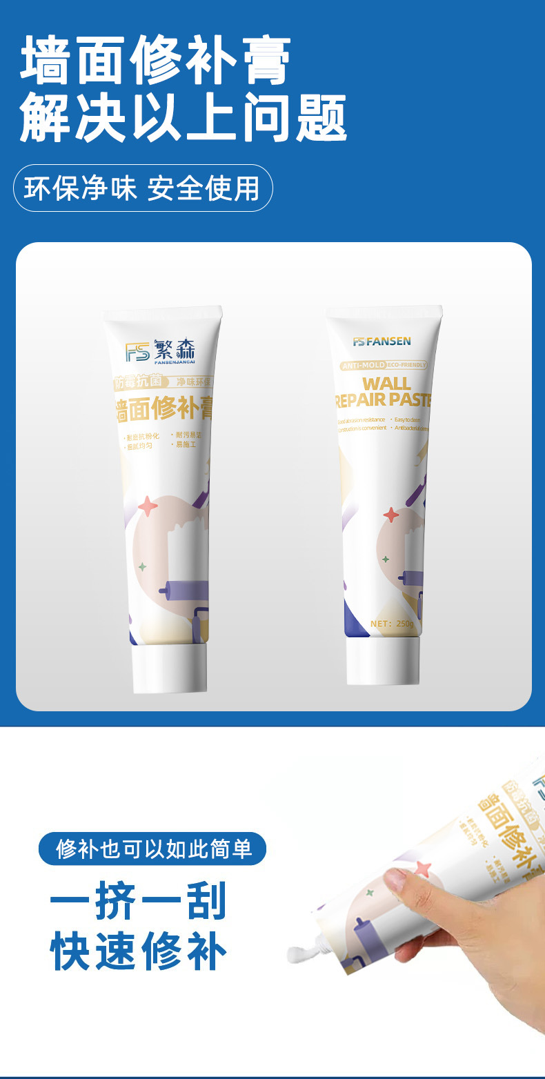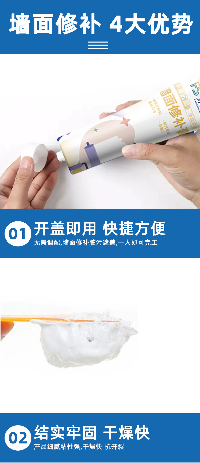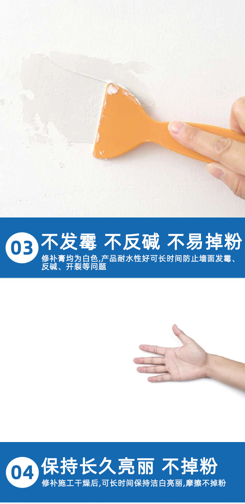 防水补墙膏墙面修补白色墙壁翻新墙体裂缝修复家用防潮防霉腻子膏
