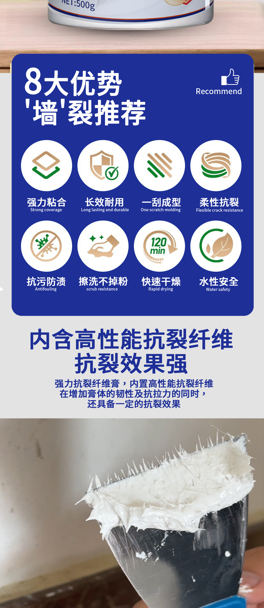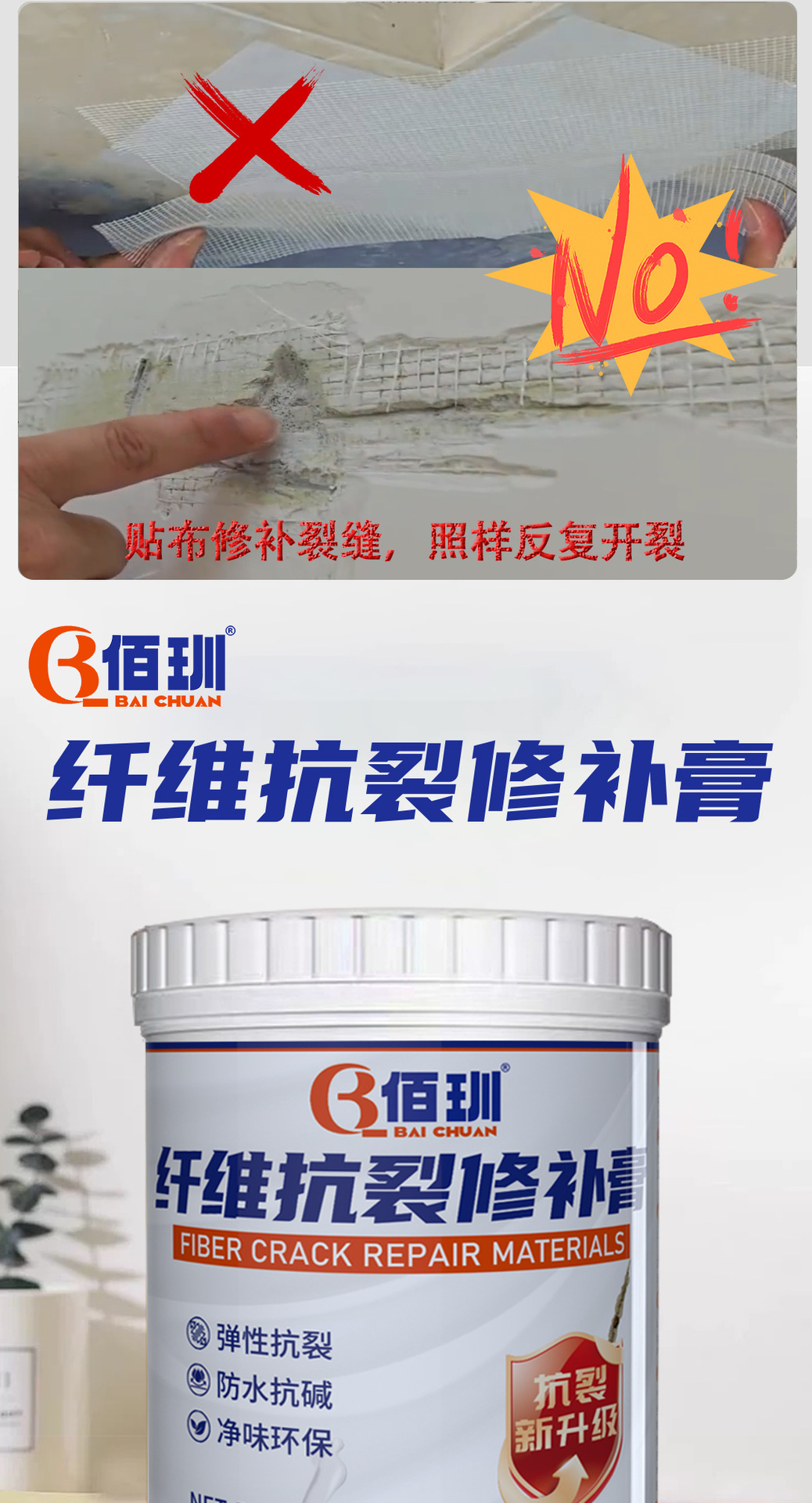 包邮佰玔纤维修补膏墙面裂缝修补抗裂弹性补墙膏吊顶修补代发链接