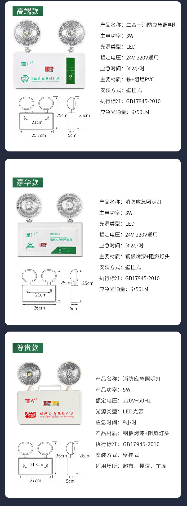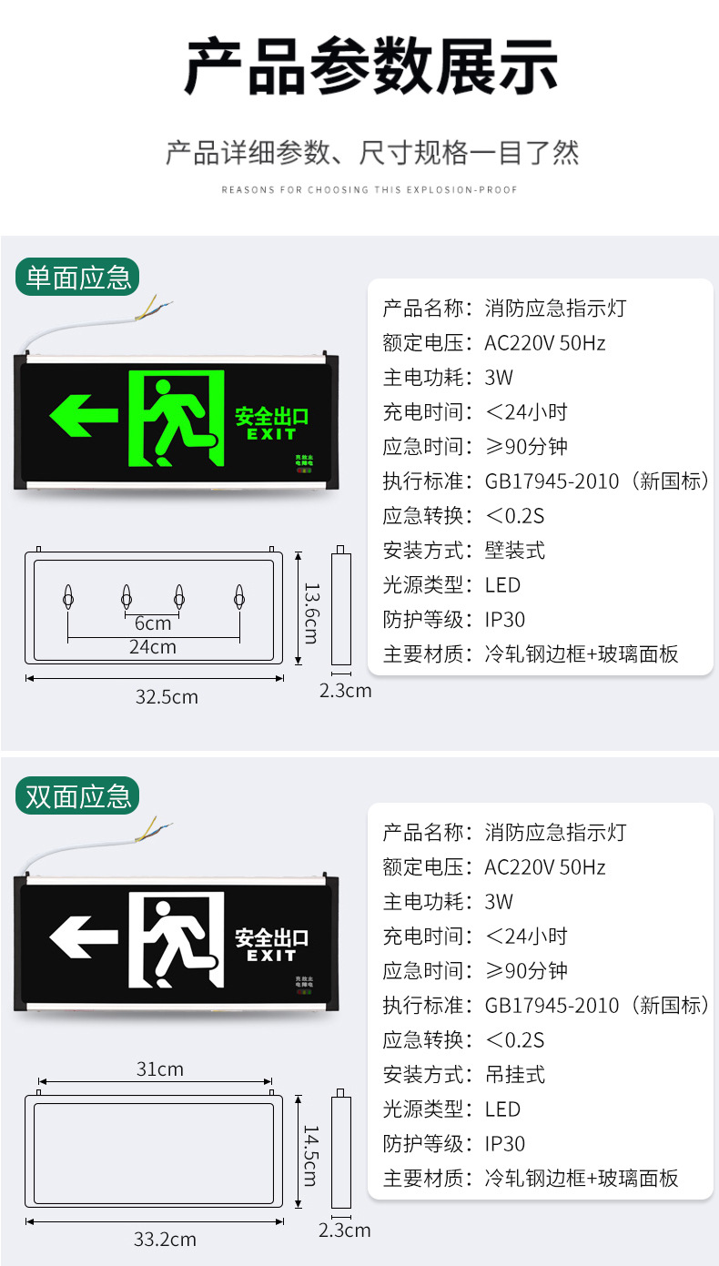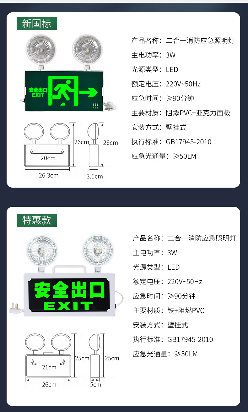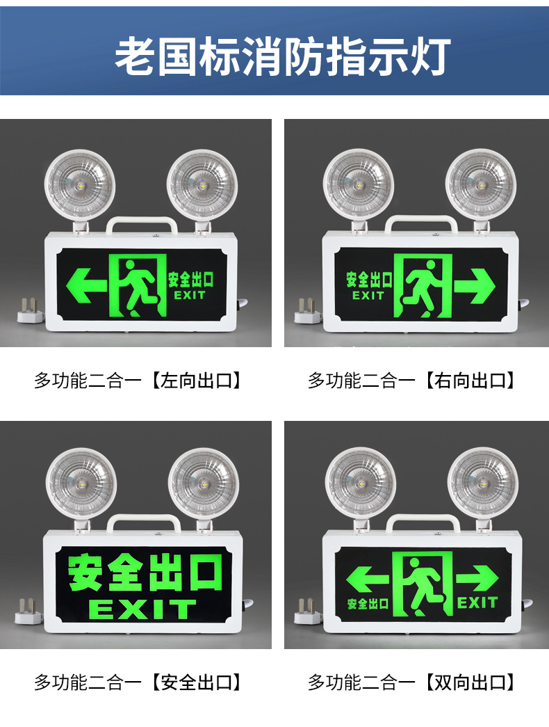 消防应急照明灯LED双头二合一多功能应急灯疏散安全出口指示牌