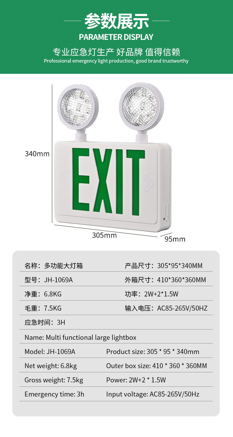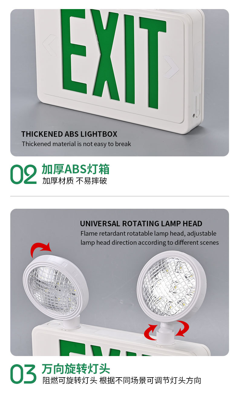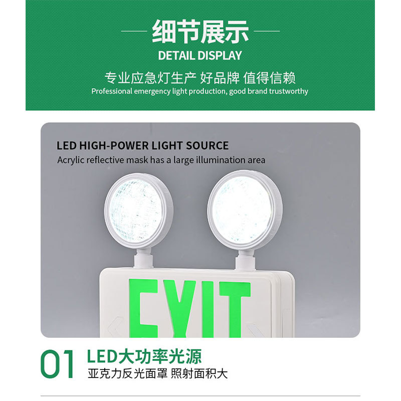 多功能LED应急指示灯双头照明家用商用消防疏散通道指示牌