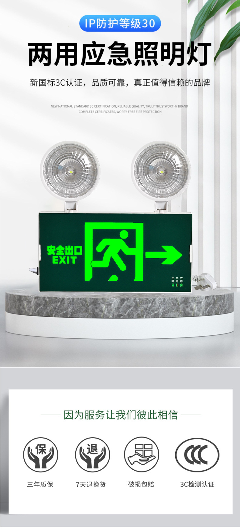 消防应急照明灯多功能二合一安全出口指示牌通道楼梯疏散双头灯