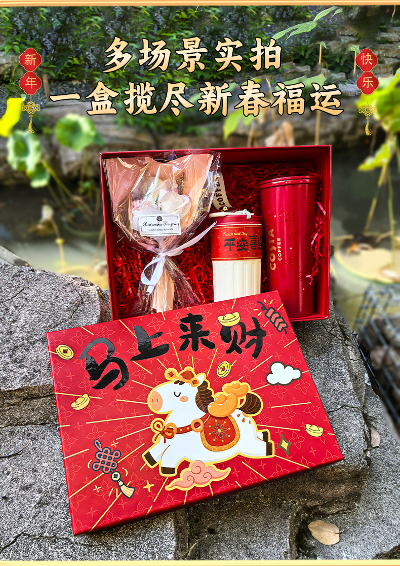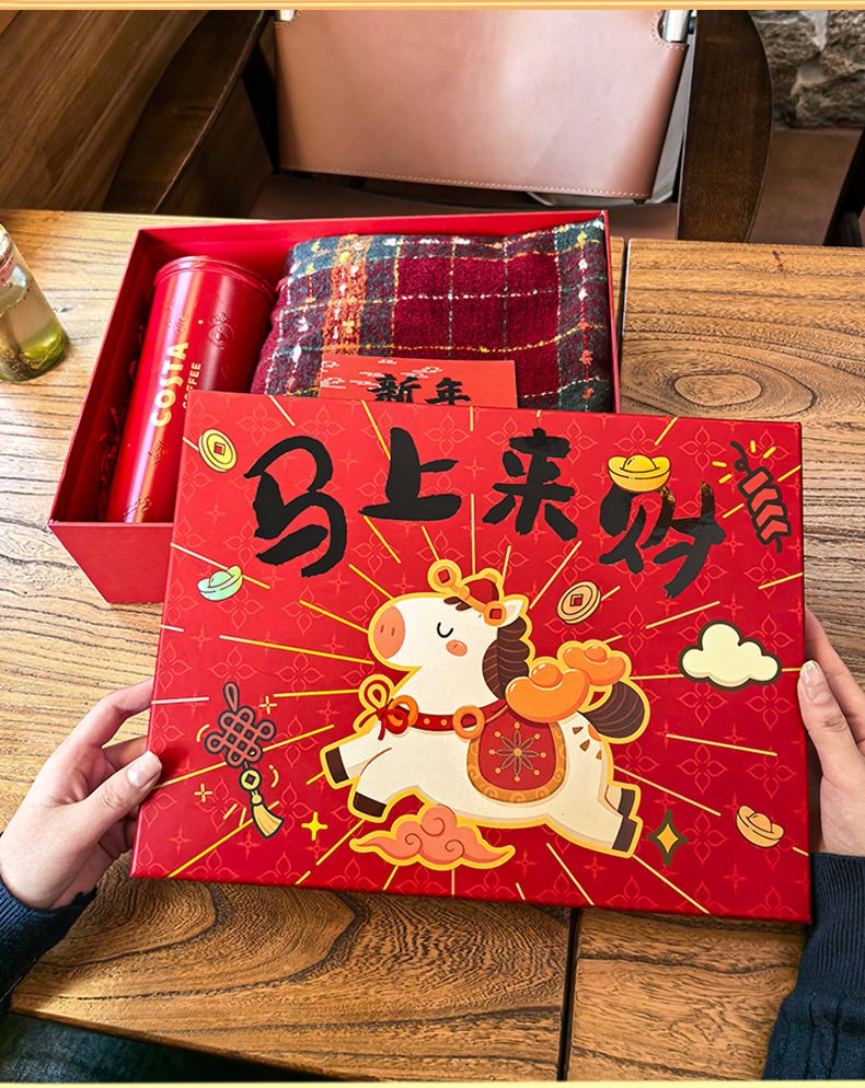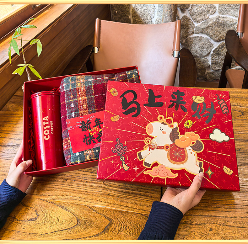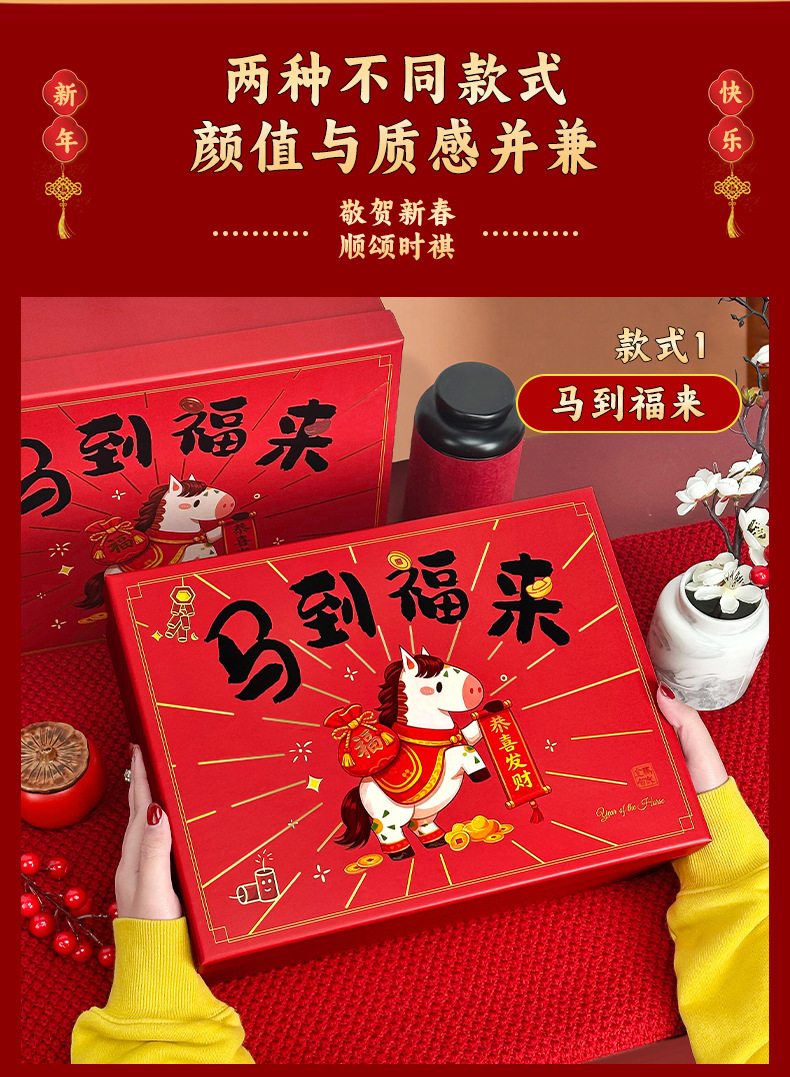 2026马年礼盒红色新年送礼伴手礼包装盒围巾保温杯坚果春节礼品盒
