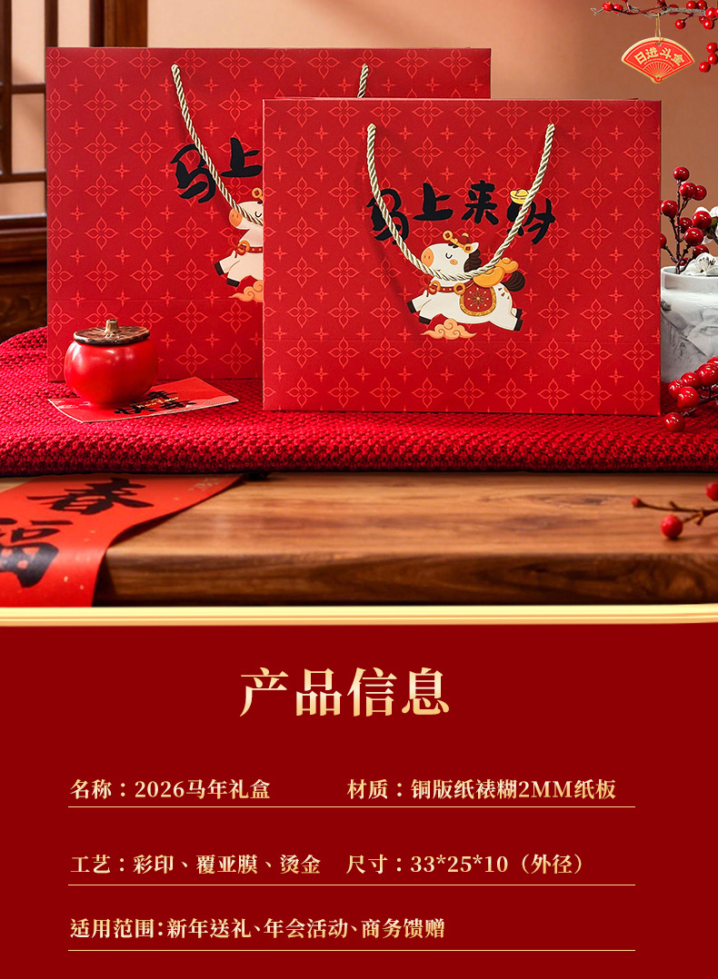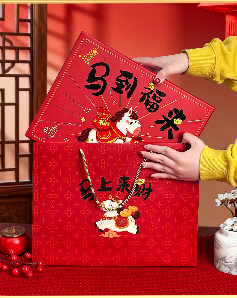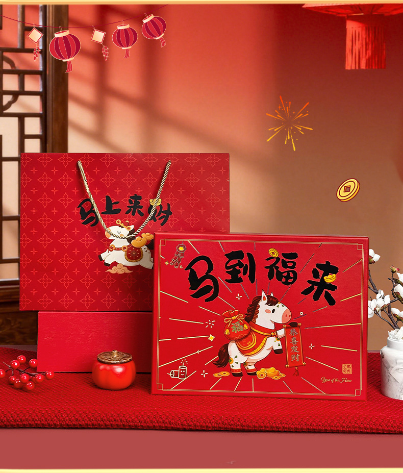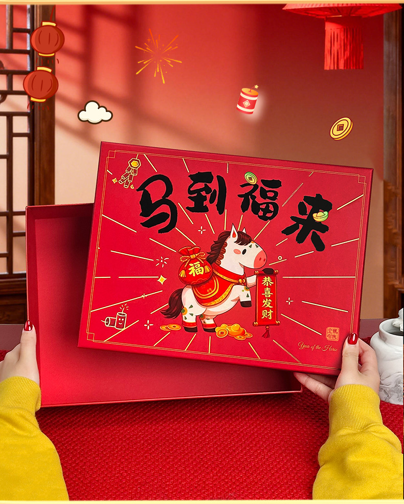 2026马年礼盒红色新年送礼伴手礼包装盒围巾保温杯坚果春节礼品盒