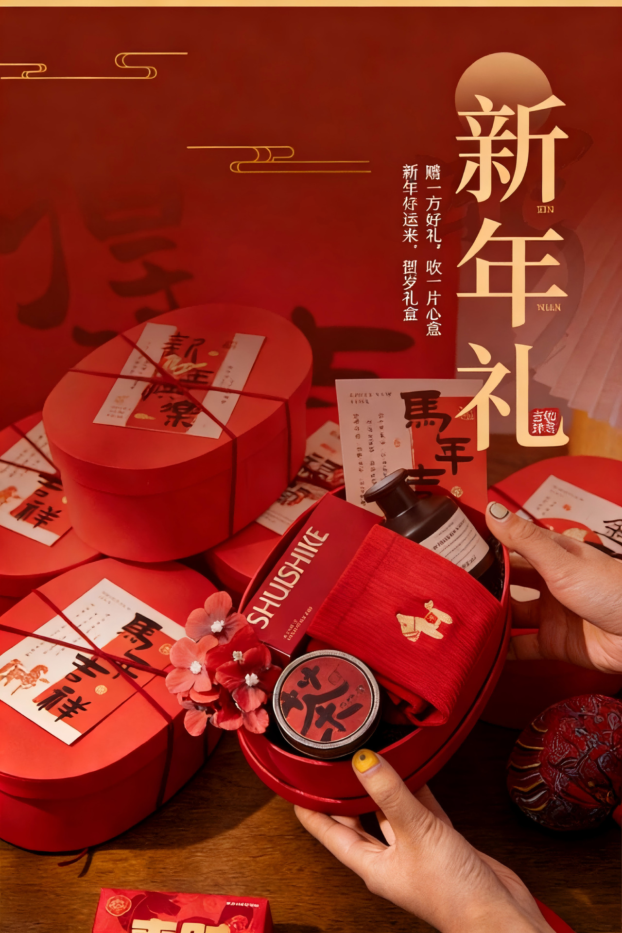 2026春节新年红色套装礼盒牛皮纸盒礼盒伴手礼礼盒包装盒马年礼盒