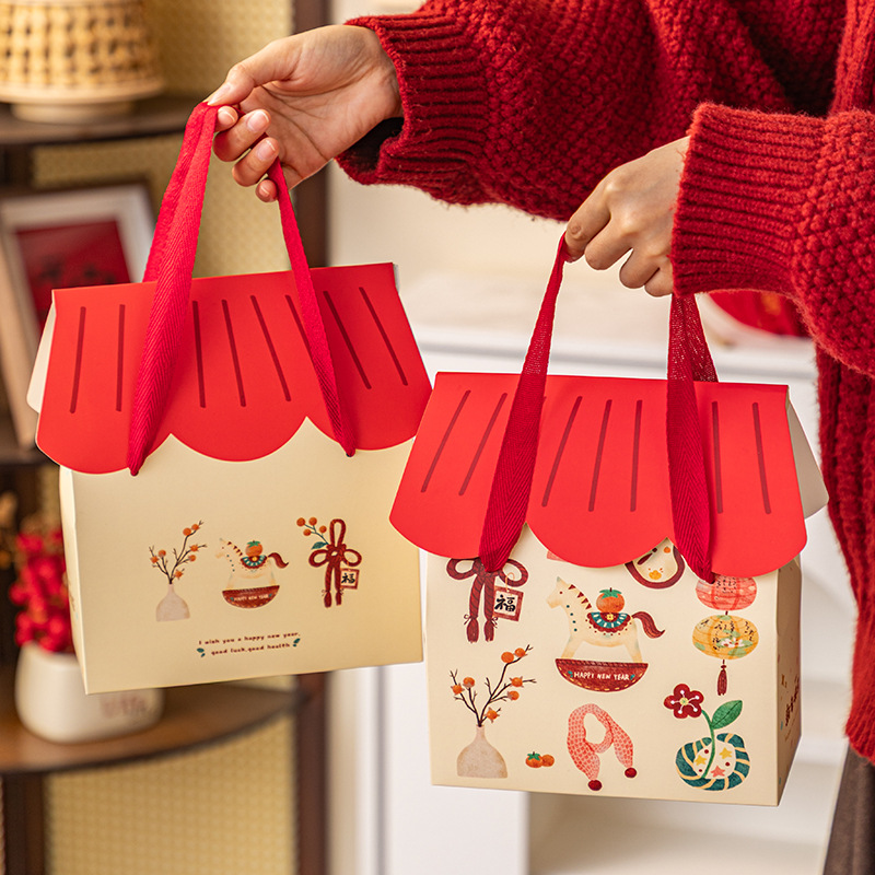 2026马年新年曲奇饼干包装盒糖果零食礼袋牛轧糖雪花酥春节手提盒
