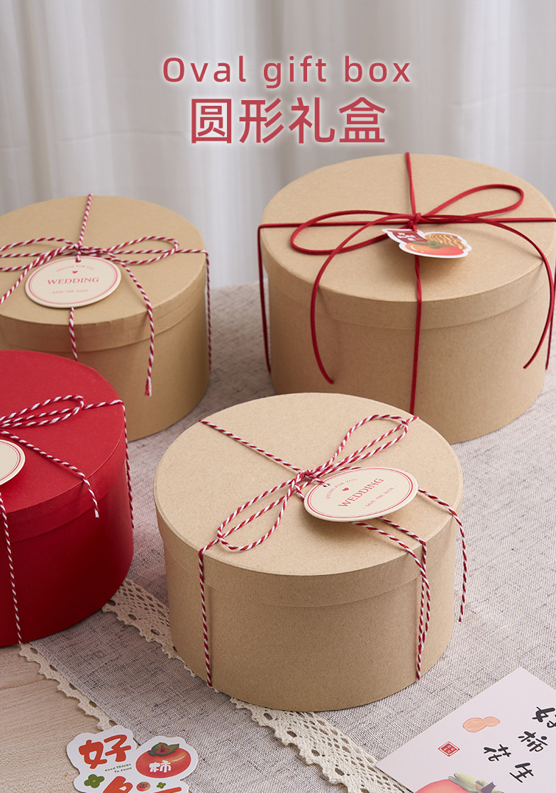 圆形纸盒牛皮纸盒伴手礼礼盒圆形蛋糕盒2026春节马年新年伴手礼盒