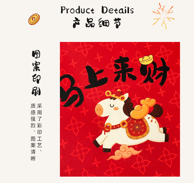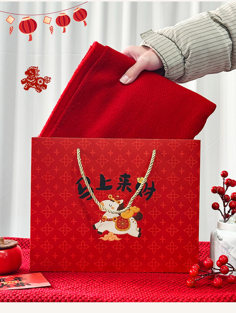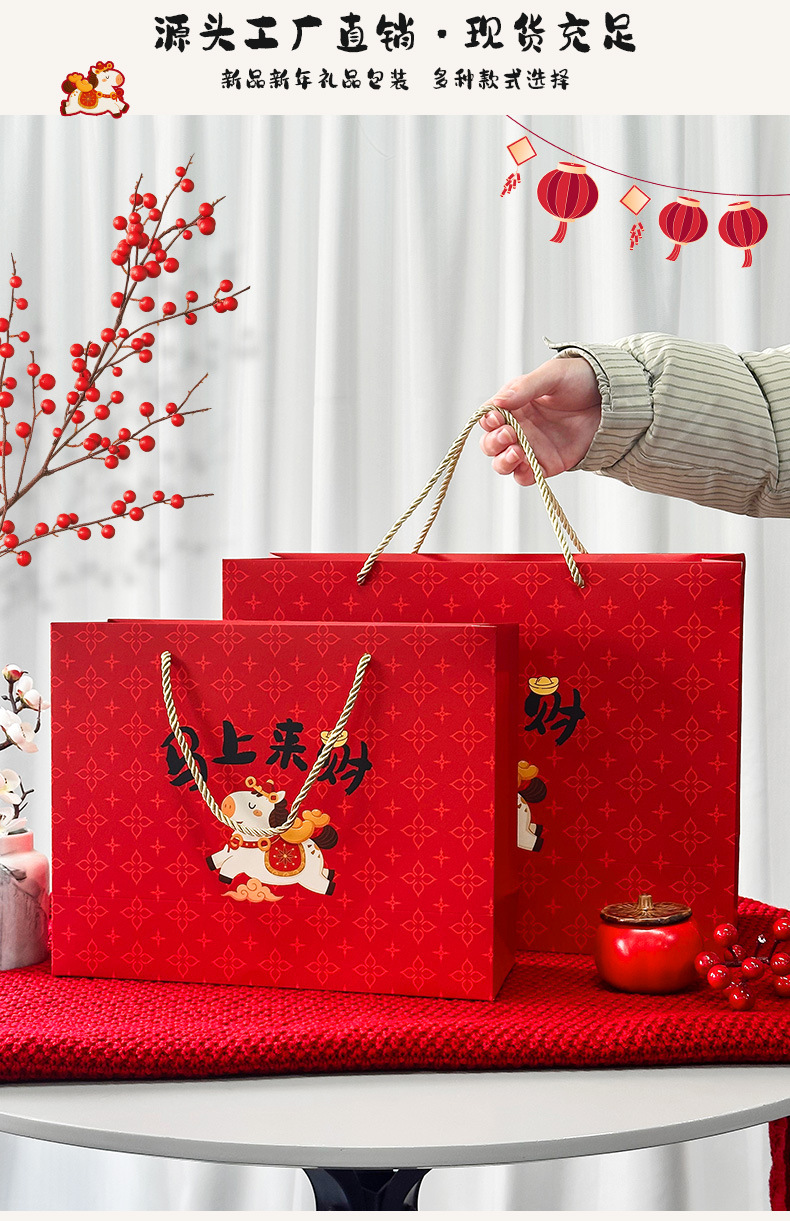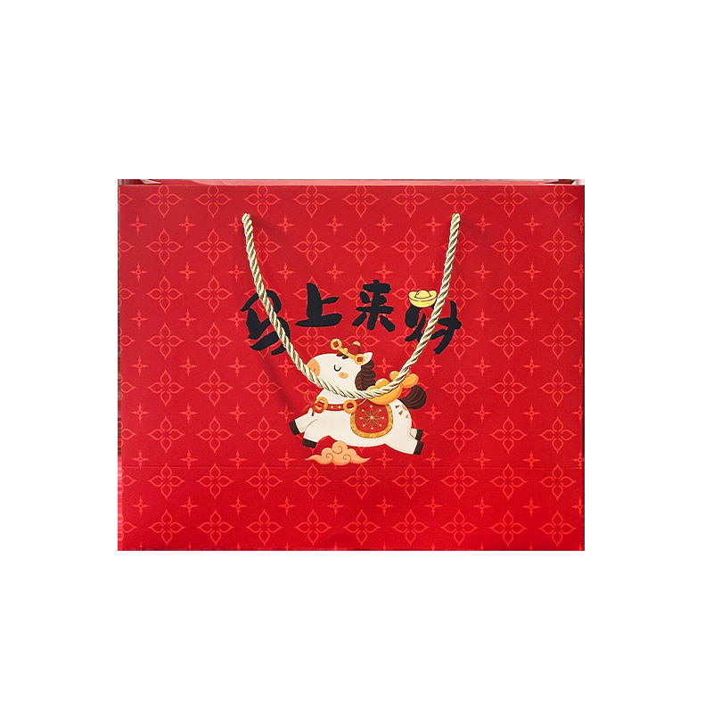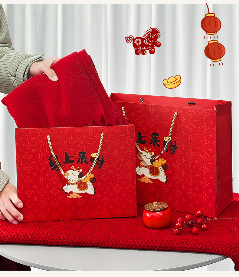 春节迎新礼品包装袋2026马年马上来财卡通礼袋创意新年白卡手提袋