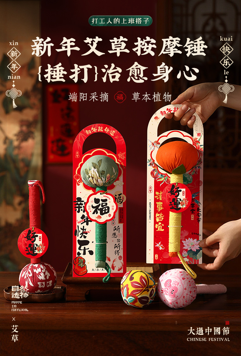 新年艾草锤创意礼物养生锤经络敲打按摩锤实用礼品公司年会伴手礼