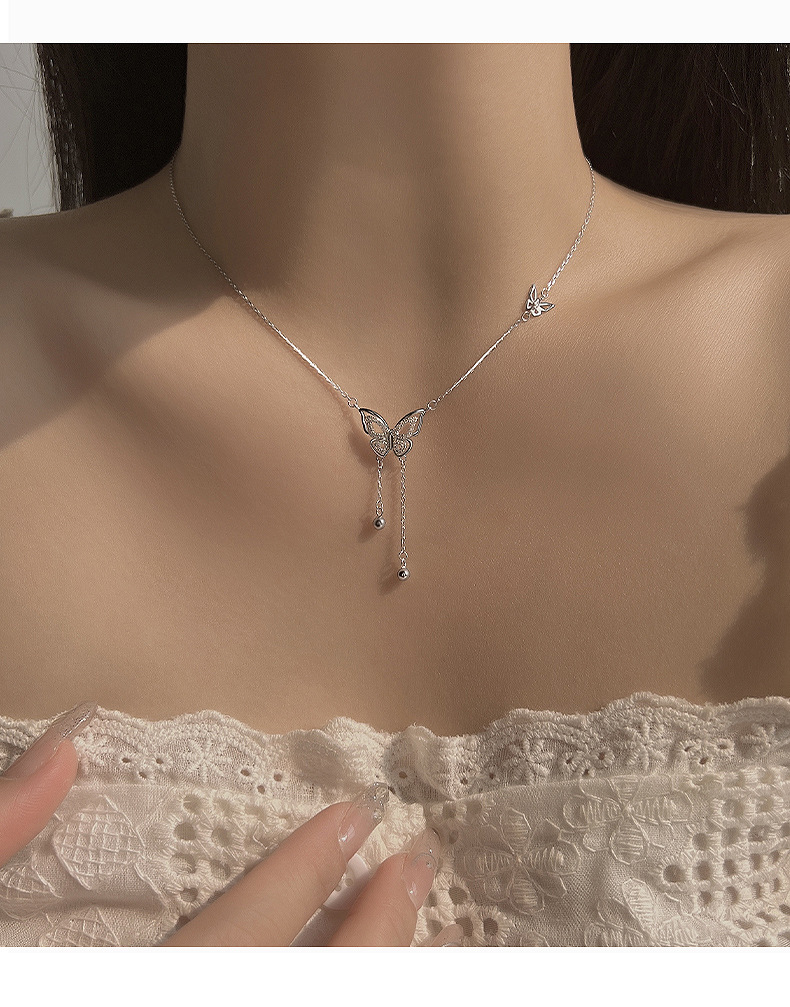新款流苏蝴蝶项链女小众百搭轻奢日常百搭聚会锁骨链送礼物批发