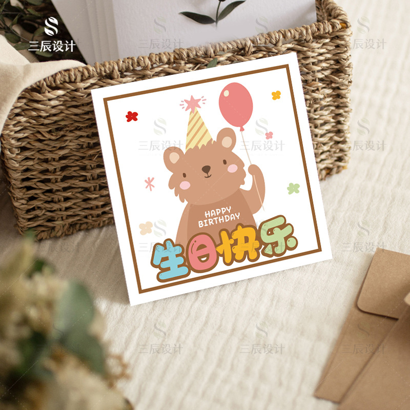 生日贺卡卡片高级感创意风花束鲜花儿童公司小卡片祝福留言卡