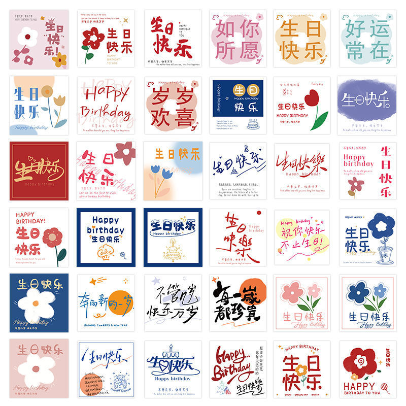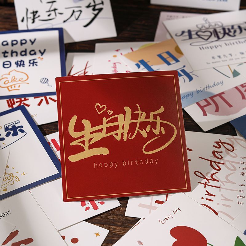 生日快乐贺卡方形高级感花店花束蛋糕简约小卡片礼物鲜花手写卡片