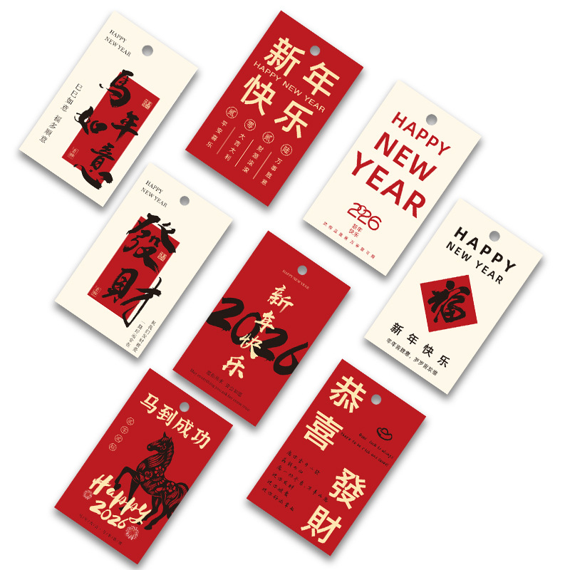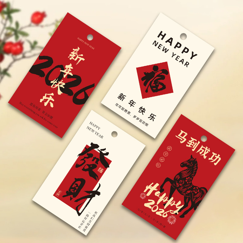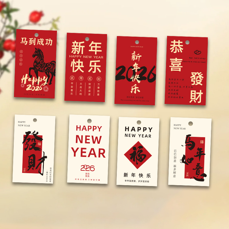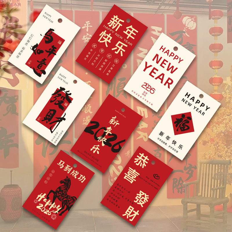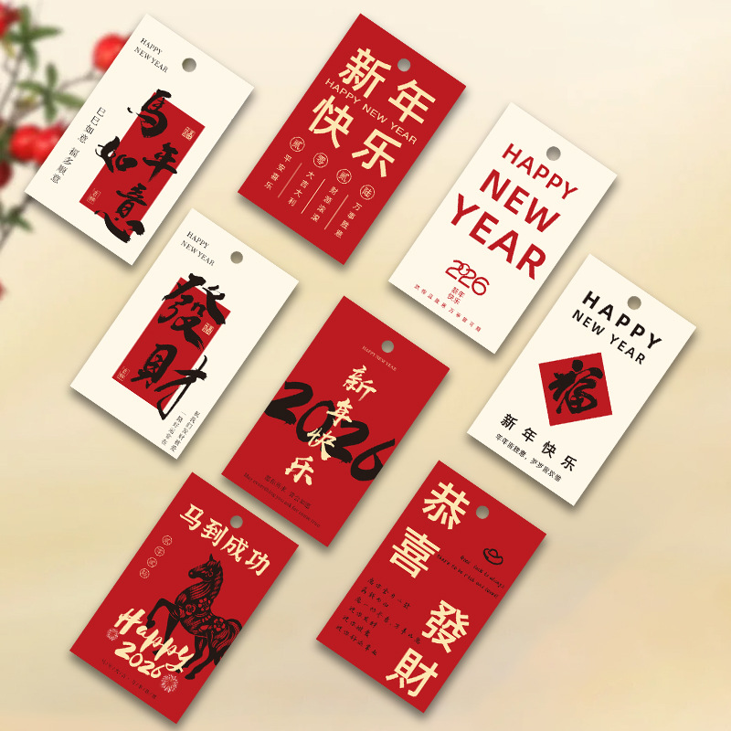 2026新年快乐贺卡中国风春节高级简约吊牌祝福小卡片花店伴手礼卡