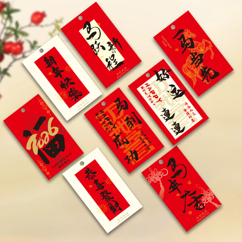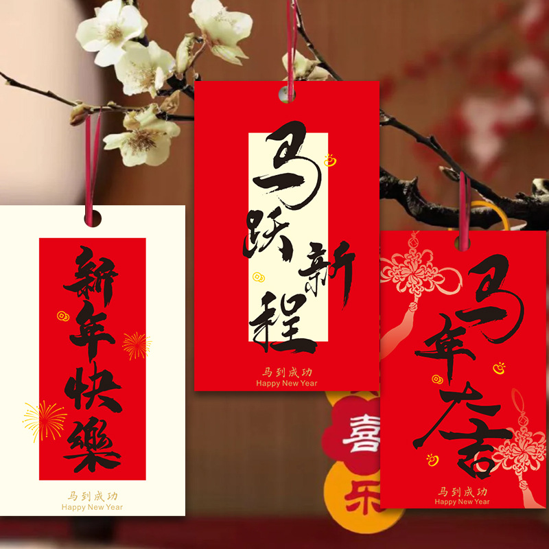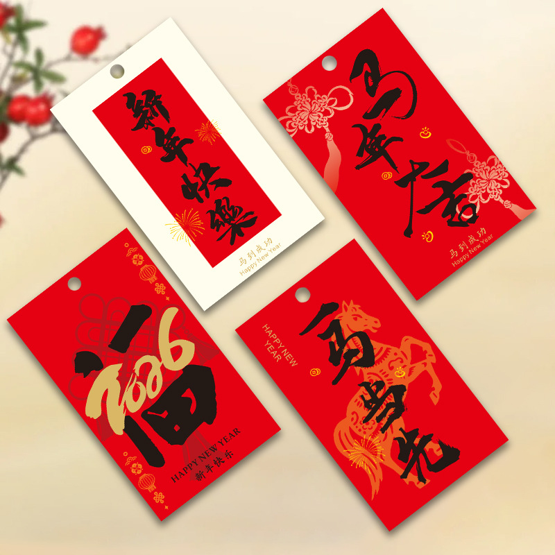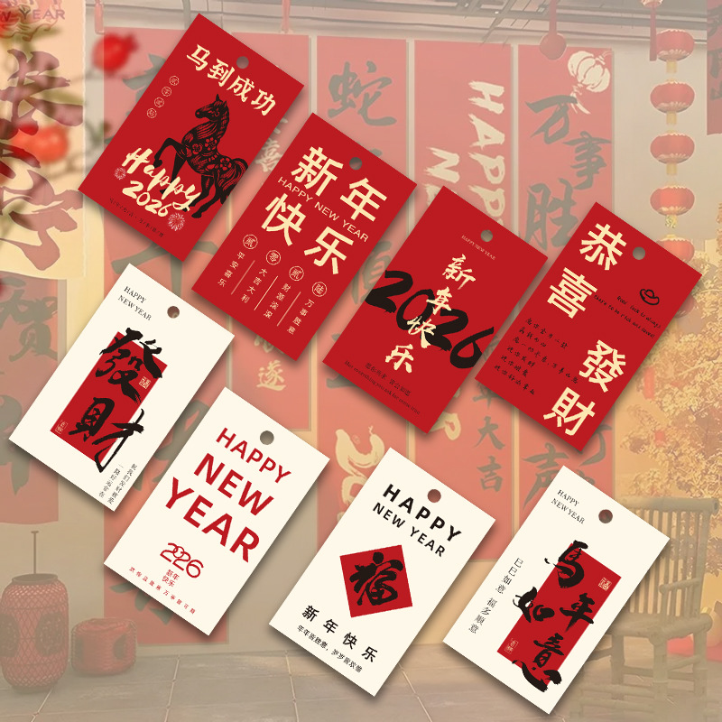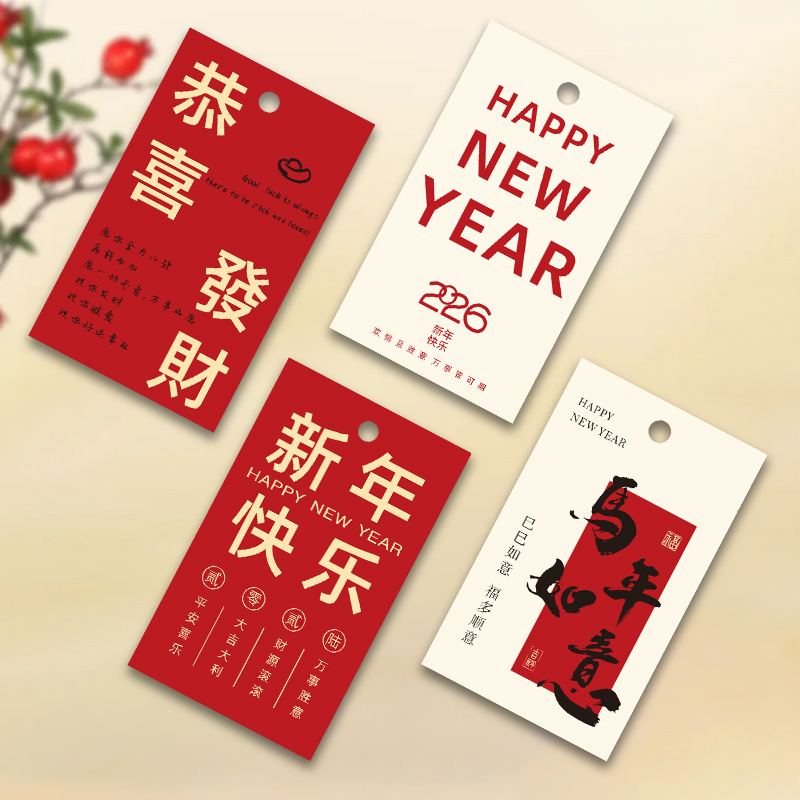2026新年快乐贺卡中国风春节高级简约吊牌祝福小卡片花店伴手礼卡
