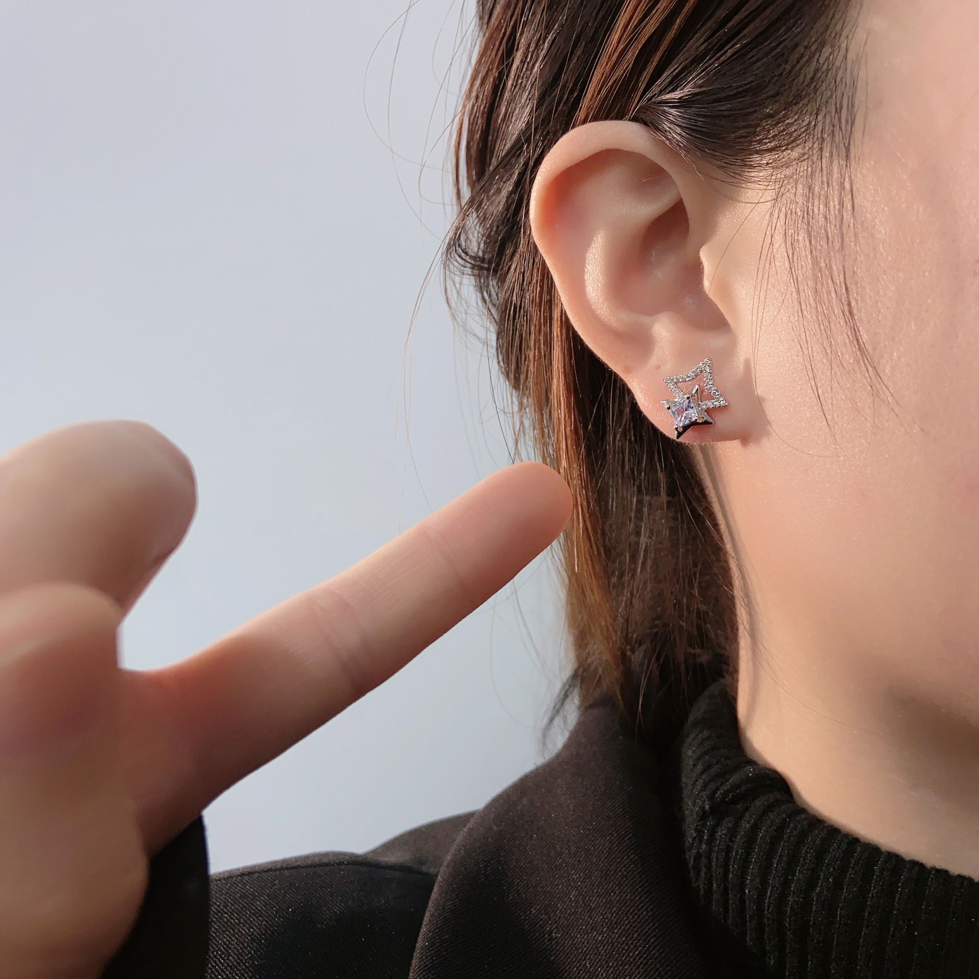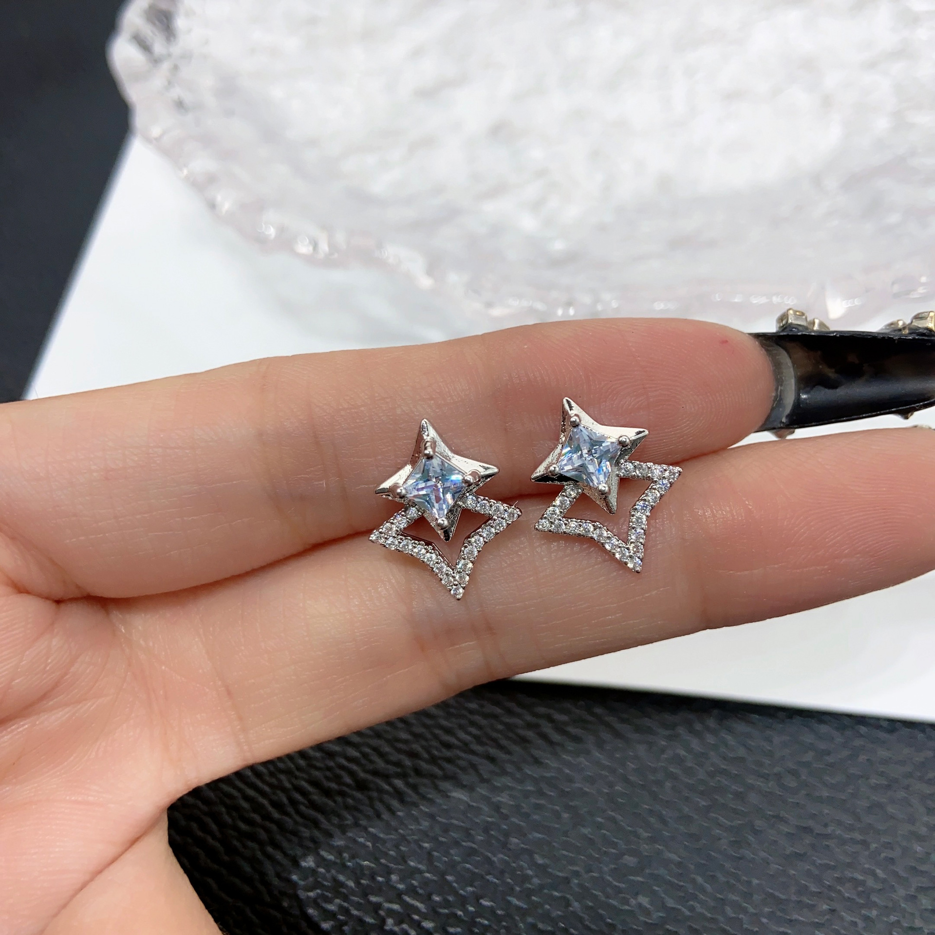 新款四芒星锆石耳钉女轻奢小众高级感简约时尚百搭感耳环耳饰批发